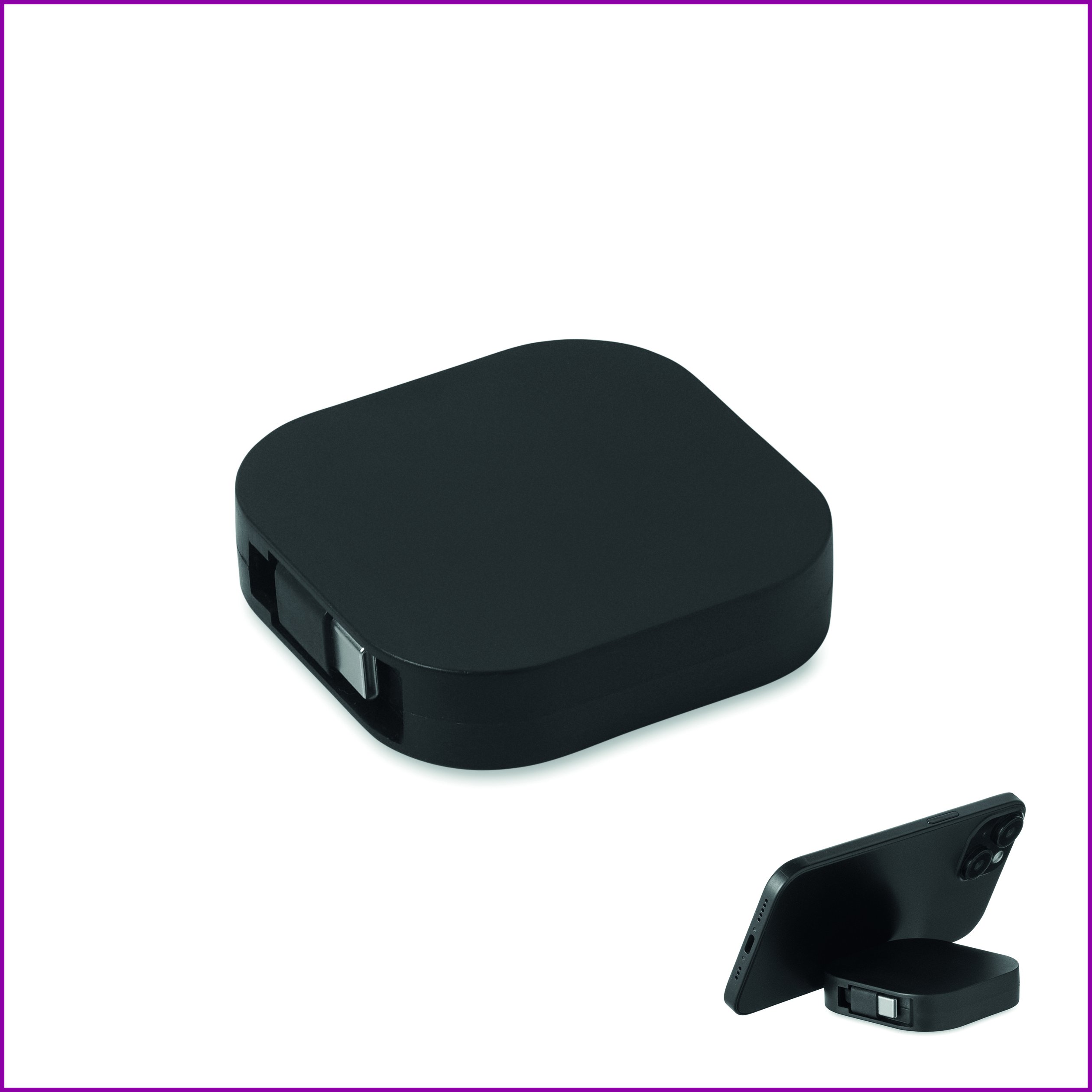 100 W:n sisäänvedettävä lataus- ja datakaapeli. Sisältää puhelinpidikkeen. PVC-kaapeli ja ABS-kuori virransyöttöä ja tiedonsiirtoa varten (480 Mbps). C-tyypin ja C-tyypin liitäntä.