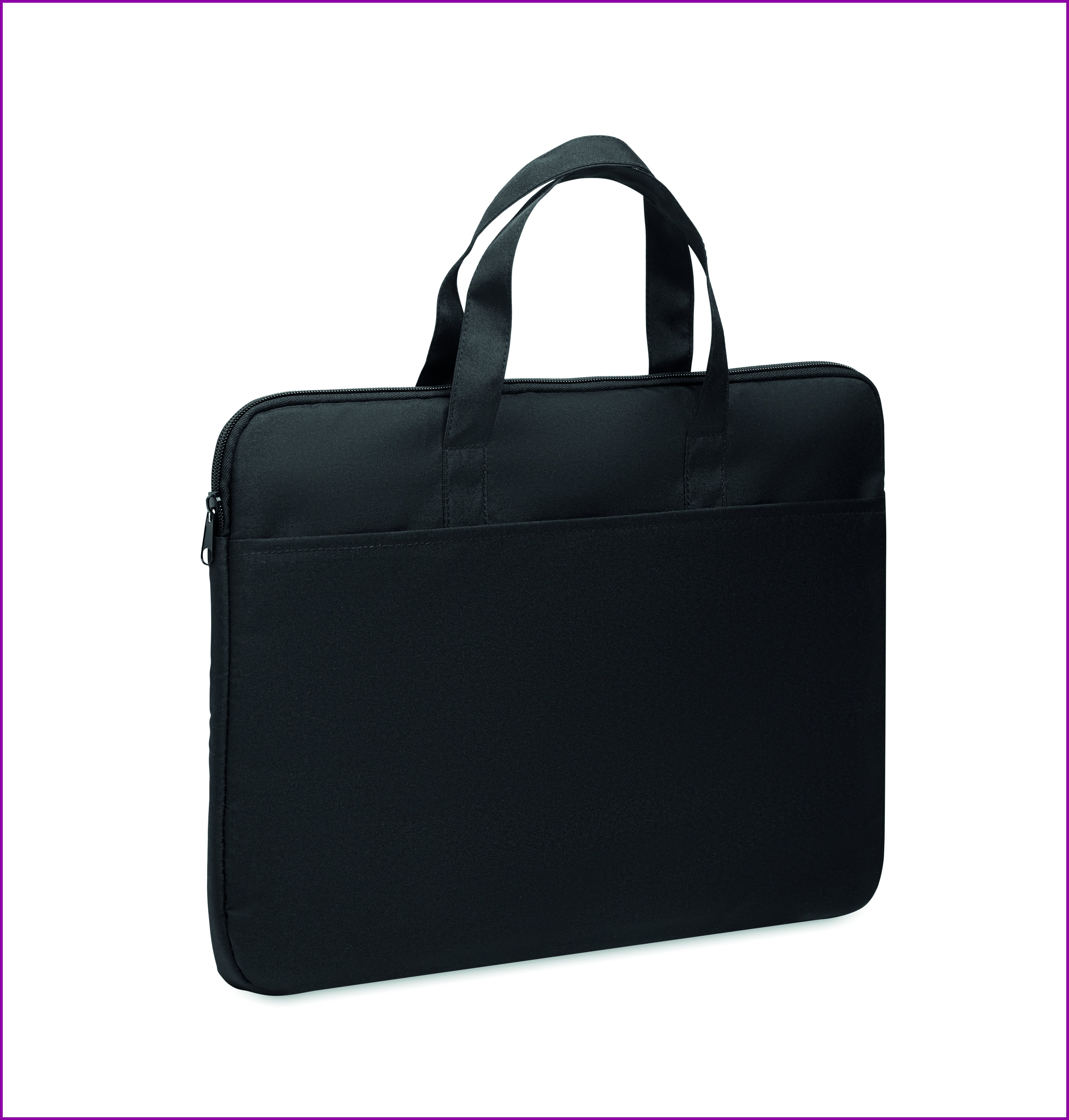 15'' '' kannettava tietokoneen laukku 300D RPET polyesteristä, laukussa on kahvat ja trolleypidike kääntöpuolella.