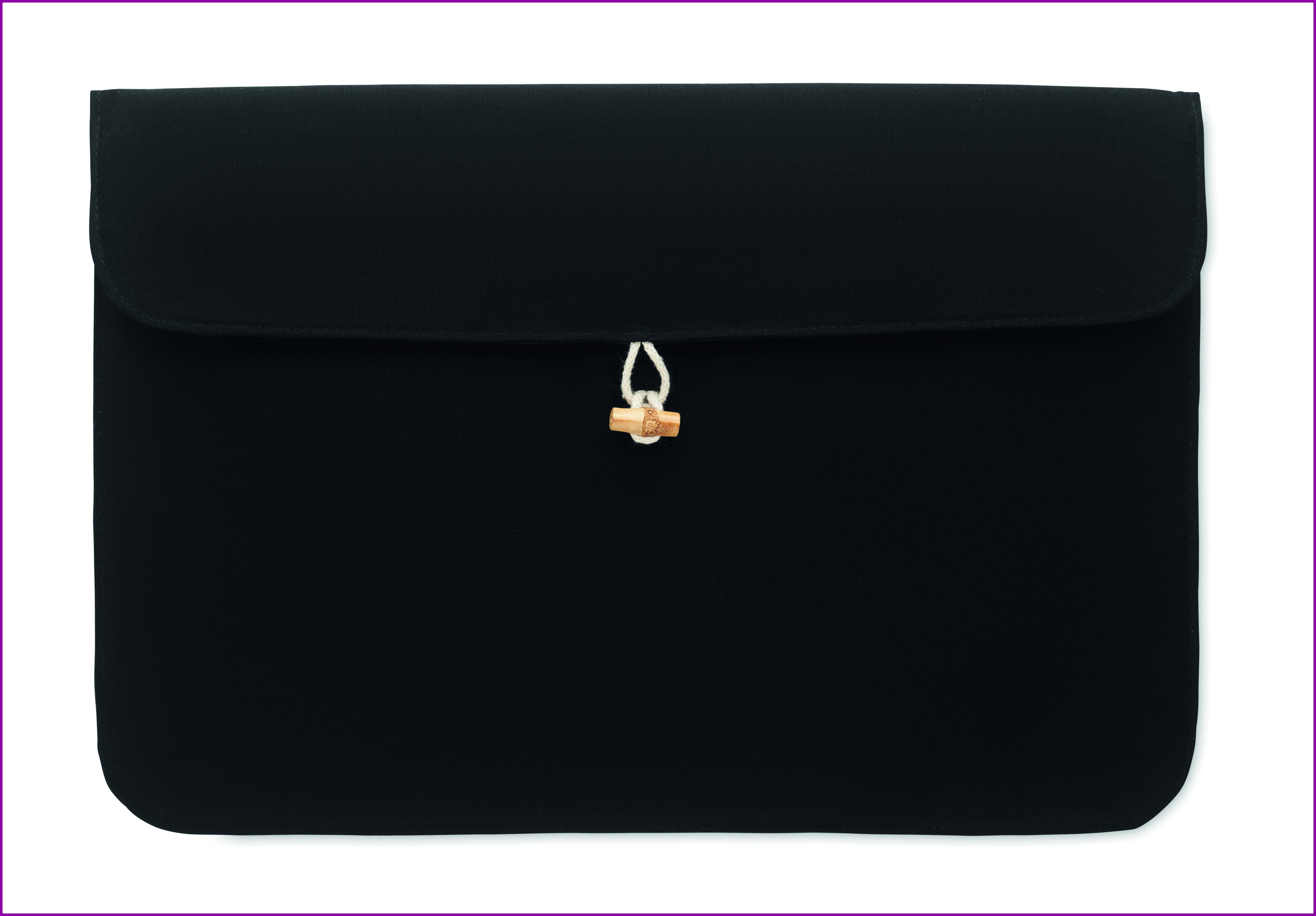 15 tuuman pehmustettu kannettavan tietokoneen laukku, puuvillaa, 220 gr/m². Sisävuori 120 gr/m². Bambunappisuljenta.