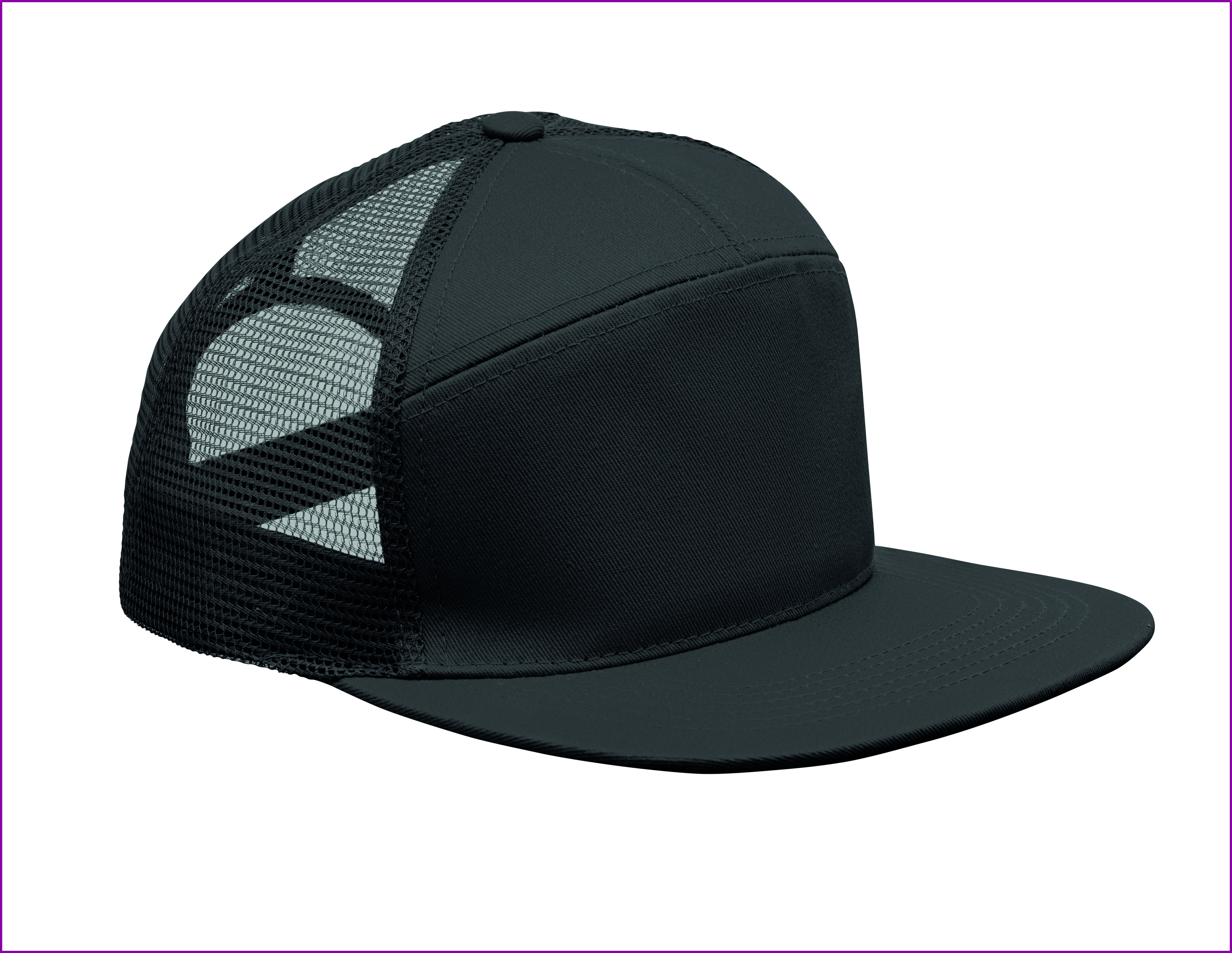 7-paneelinen suoralippainen lippalakki puuvillatwillistä (235 g/m²), polyesteriverkkoselkämys ja muovinen suljin.
