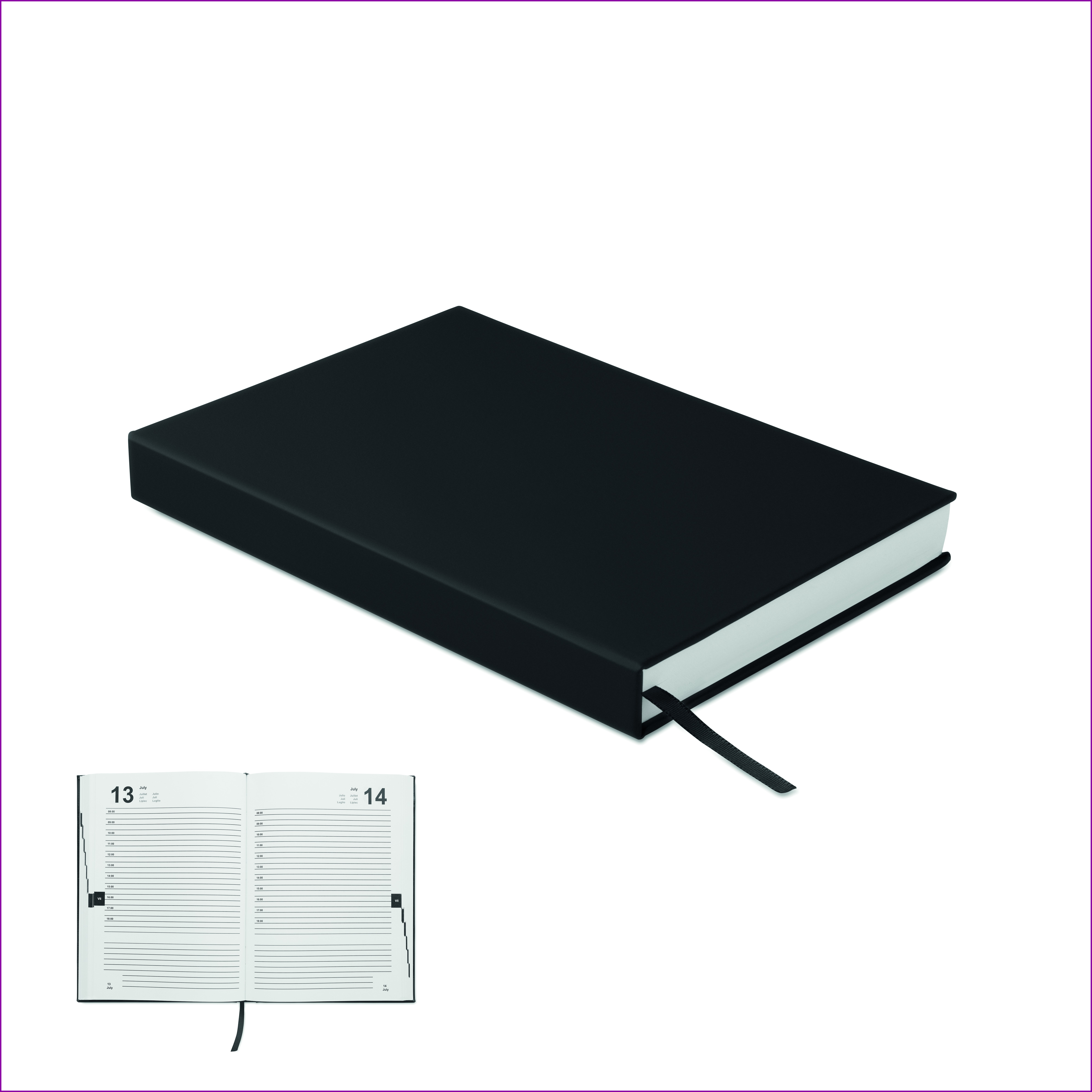 A5 ikuinen päiväkirjamuistikirja, joka on valmistettu 60 % kierrätetystä kuluttajakäytöstä peräisin olevasta polyesteristä ja jossa on 40 % PU-kannet. 416 sivua (208 arkkia) 70 g/m² kierrätyspaperista. Mukana yhteensopiva polyesterinauhalla varustettu kirjanmerkki.