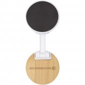 Pyydä tarjous painatuksesta tuotteseen Alcor kierrätetystä muovista valmistettu kokoontaitettava magneettinen puhelinjalusta bambuyksityiskohdilla Valkoinen