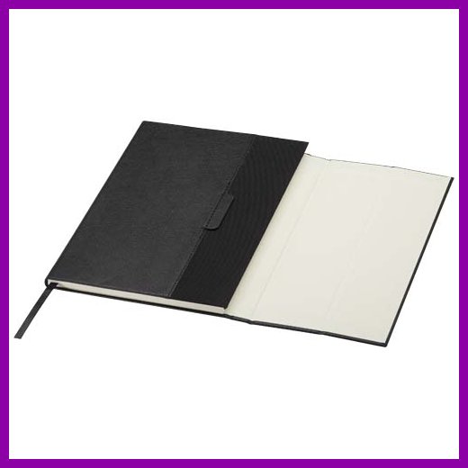 Alejandra kierrätetystä muovista valmistettu sidottu kovakantinen A5-muistikirja Musta
