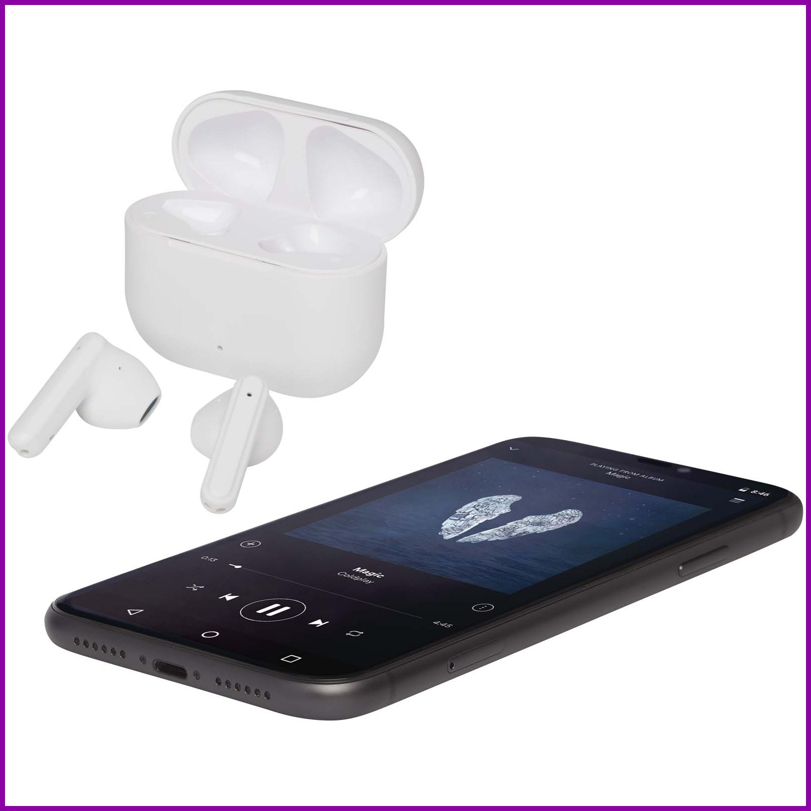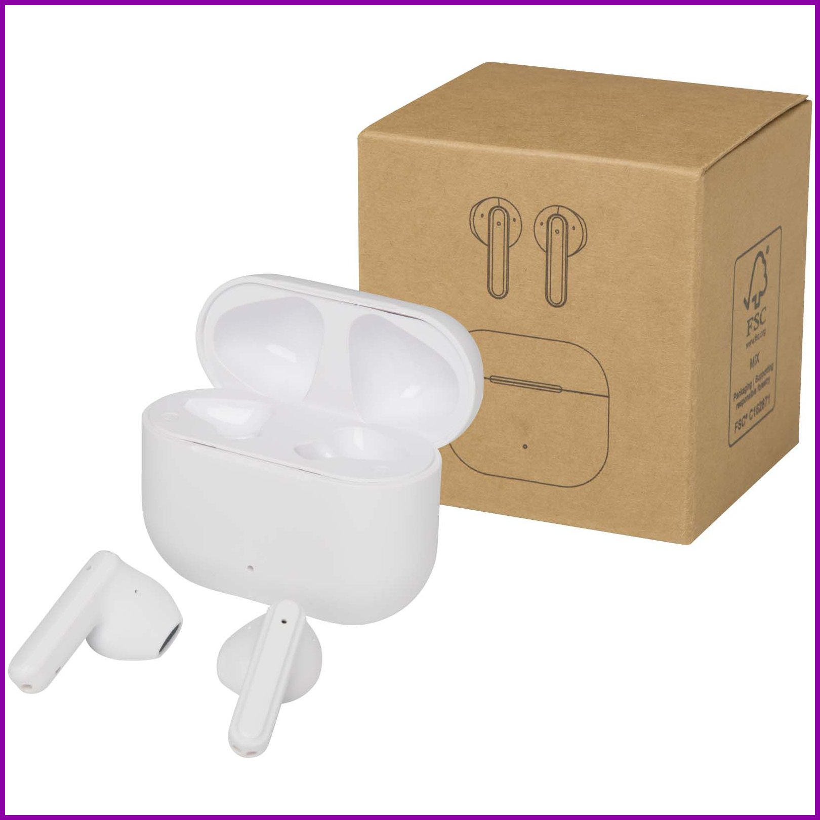 Alterf kierrätysmuovista valmistetut langattomat True Wireless Bluetooth® -kuulokkeet silikonisilla korvasovittimilla Valkoinen