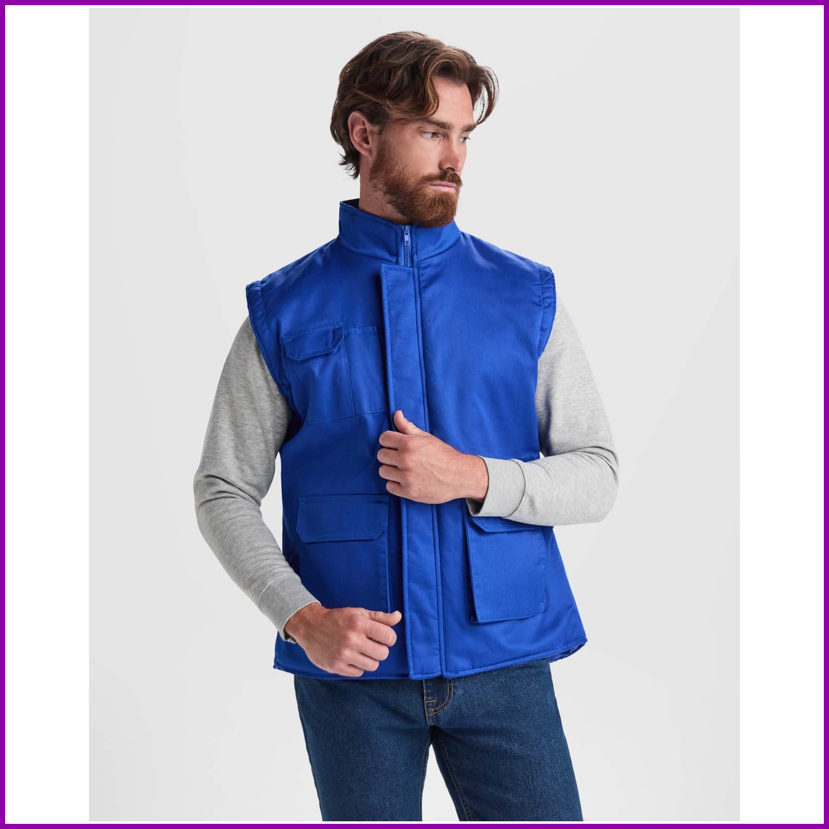 Monikäyttöinen, lämpöeristetty työvaate-liivi korkealla kauluksella. Edessä vetoketju, jossa hihna ja tarranauhakiinnitys. Yksi ulkoinen puhelintasku oikealla puolella. Kaksi vahvistettua etutaskua, joissa sivuilla tuuletusaukot. Kaksi pientä kynätaskua. Yksi sisätasku tarranauhakiinnityksellä. Vetoketjullinen tasku. Laskeutuva takaosa. Säädin tarrakiinnityksellä.Värit ja Koot