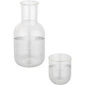 Tyylikäs 850 ml:n lasikarahvi ja yhteensopiva 200 ml:n lasimuki. Täydellinen veden, mehun tai muiden juomien tarjoiluun. Elegantti ja kompakti setti näyttää kauniilta ruokapöydällä tai työpöydällä. Valmistettu korkealaatuisesta lasista kirkkautta ja kestävyyttä silmälläpitäen.Värit ja Koot