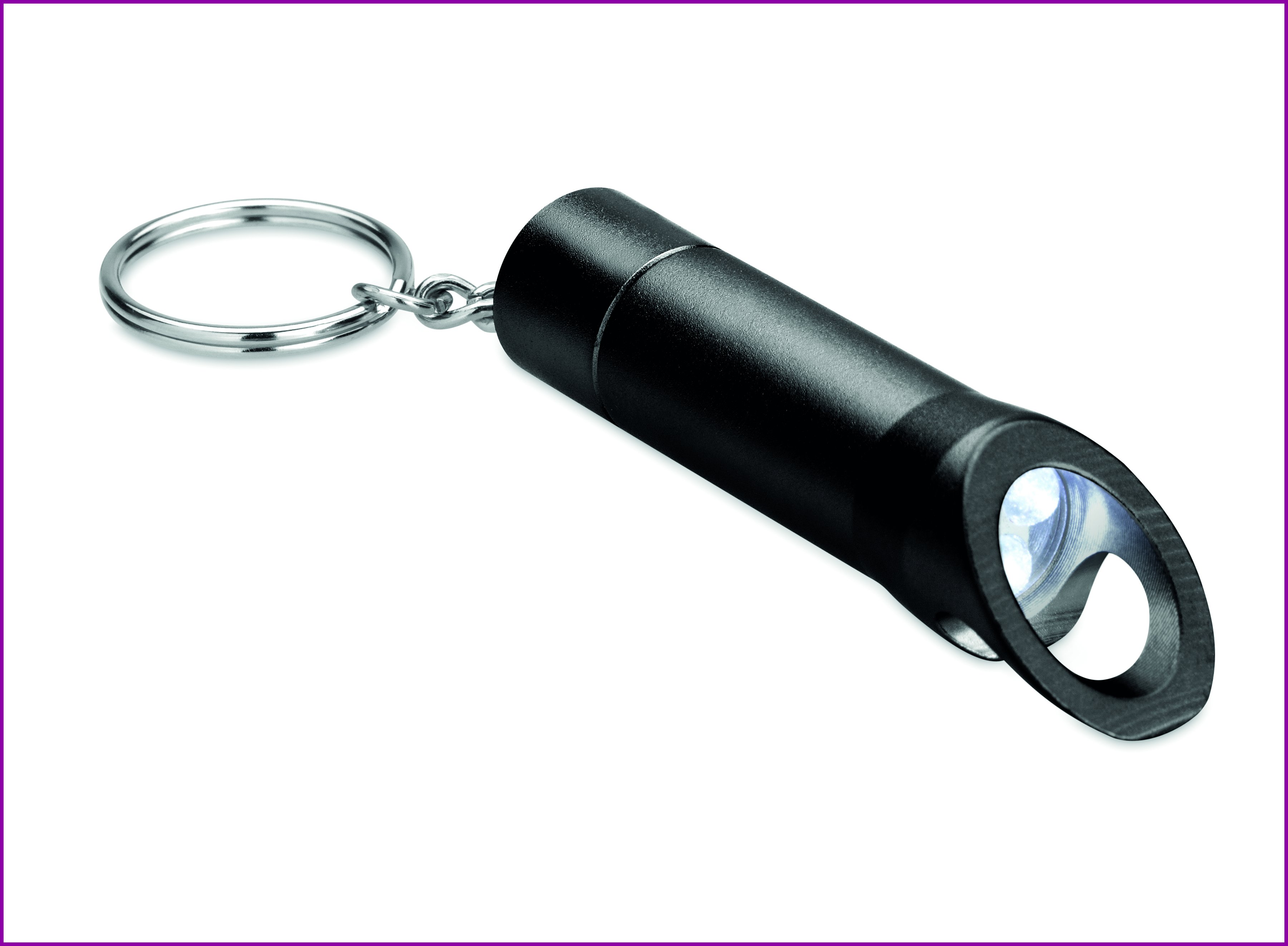 Metallinen LED-taskulamppu avaimenperä, pullonavaajalla. Patterit eivät sisälly toimitukseen.