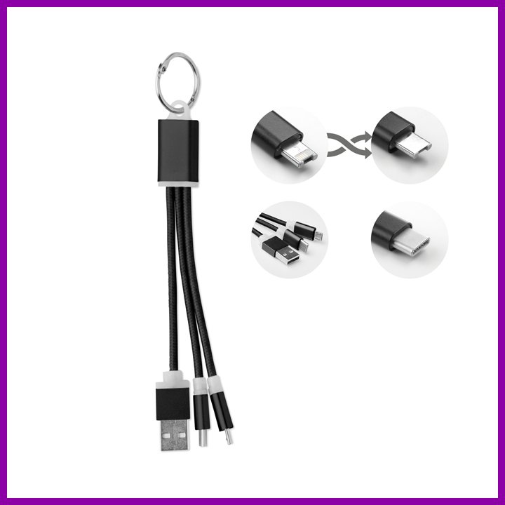 Avaimenperä, sisältää 1A micro USB ja C tyypin latauskaapelin.