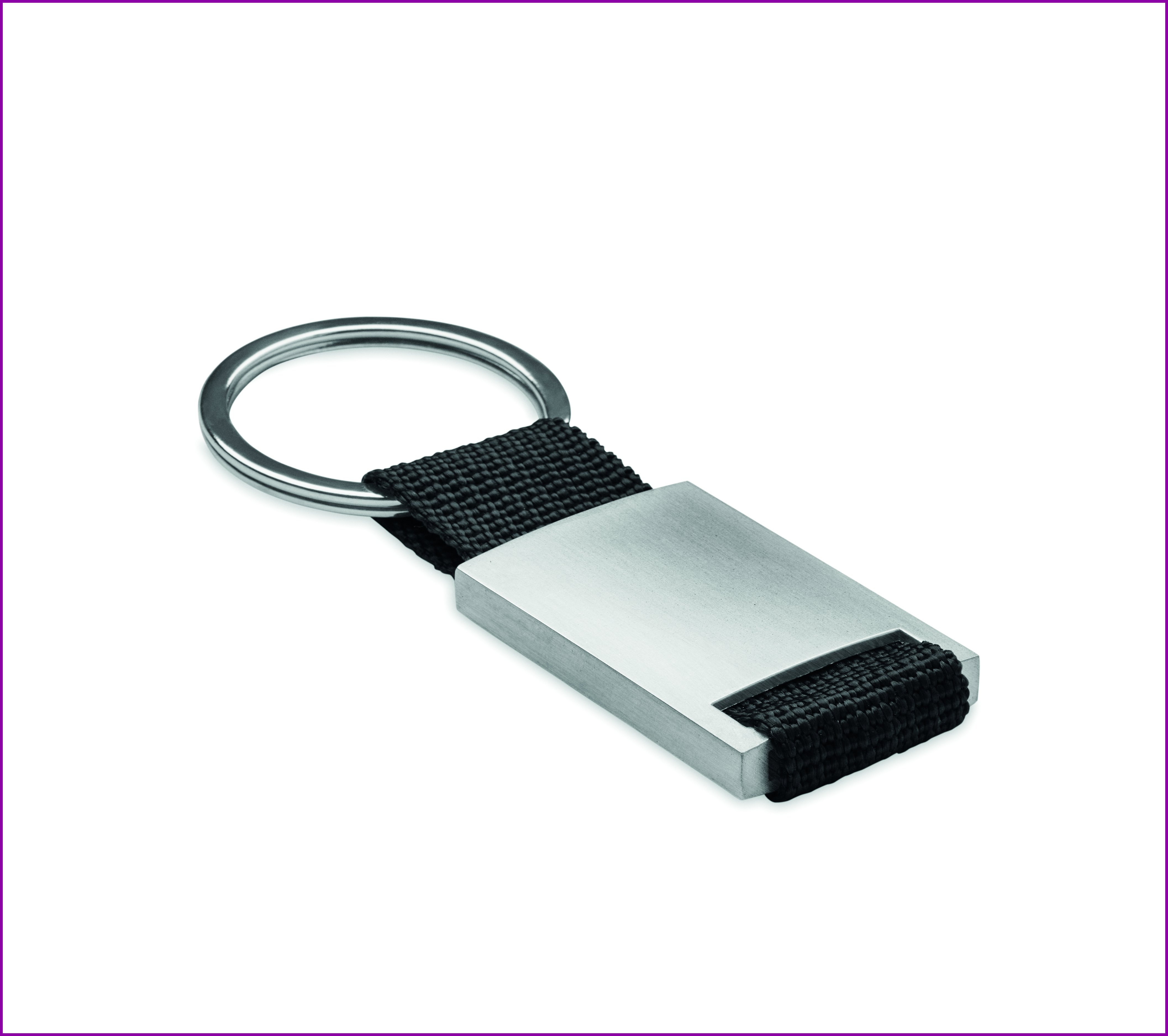 Metallinen avaimenperä värillisellä polyesterinauhalla.