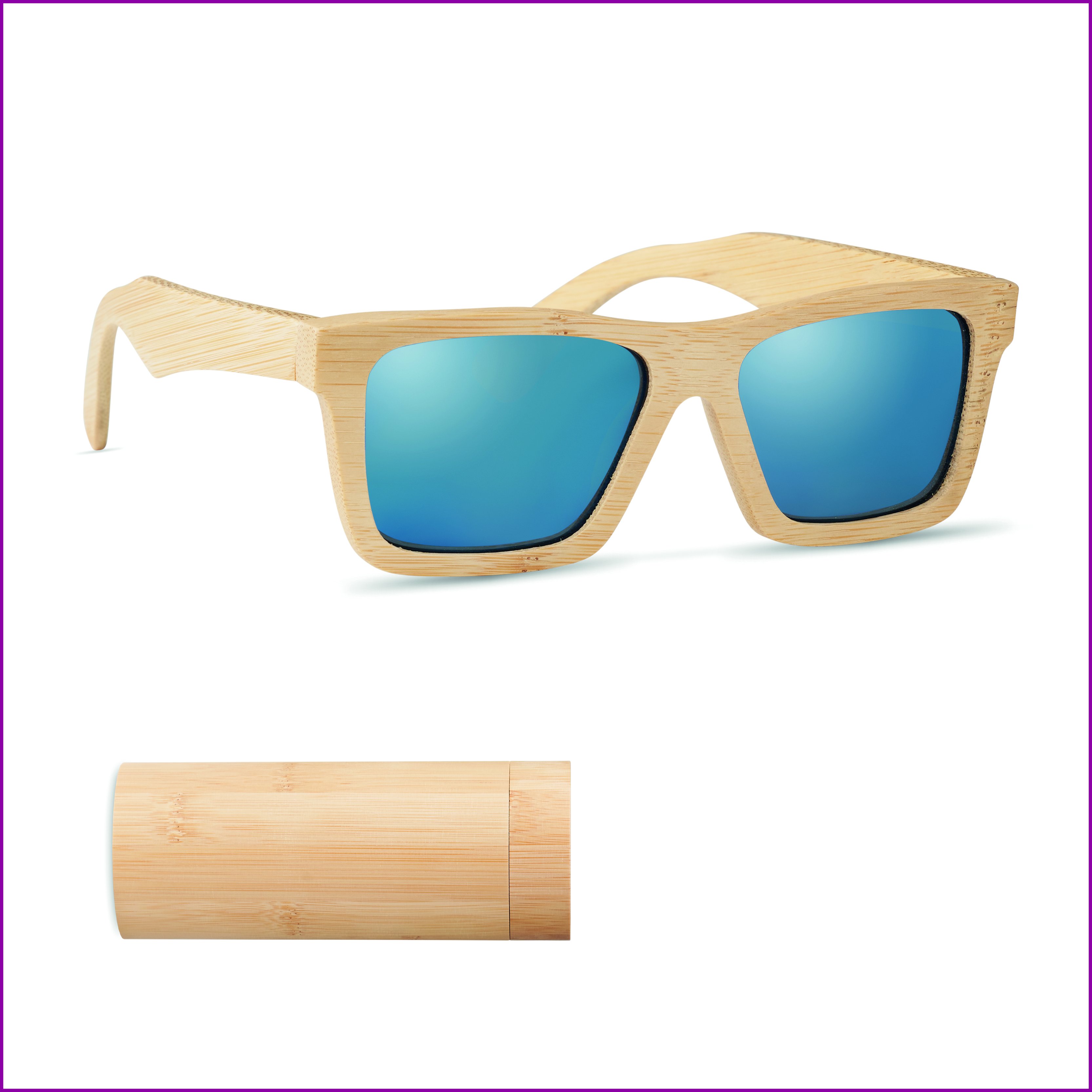 UV400 bambuiset aurinkolasit, bambuisella kotelolla. Luonnollisen materiaalin (bambu) vuoksi, tuotteiden värissä/ koossa saattaa olla erinäisyyksiä ja tämä voi vaikuttaa painatuksen lopputulokseen.