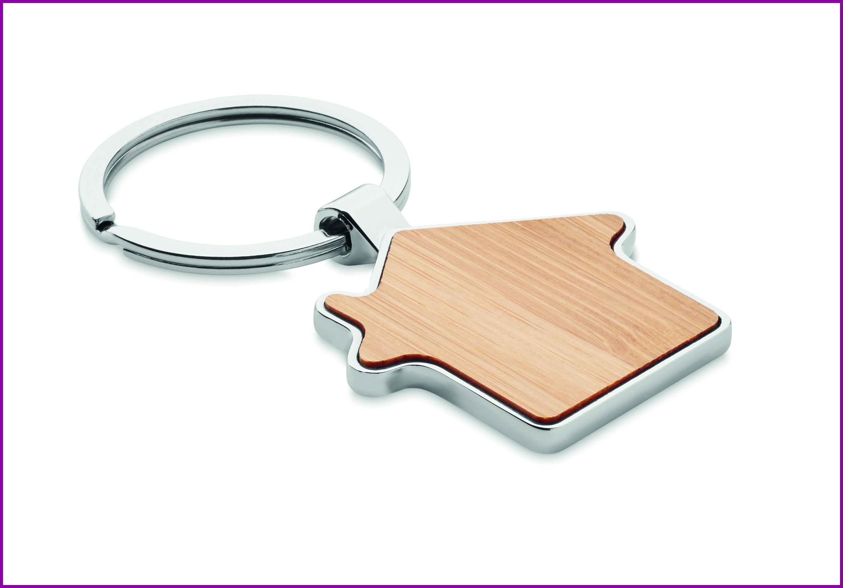 Talon muotoinen sinkkiseoksesta valmistettu avaimenperä bambu yksityiskohdalla. Luonnollisen materiaalin (bambu) vuoksi, tuotteiden värissä/ koossa saattaa olla erinäisyyksiä ja tämä voi vaikuttaa painatuksen lopputulokseen.