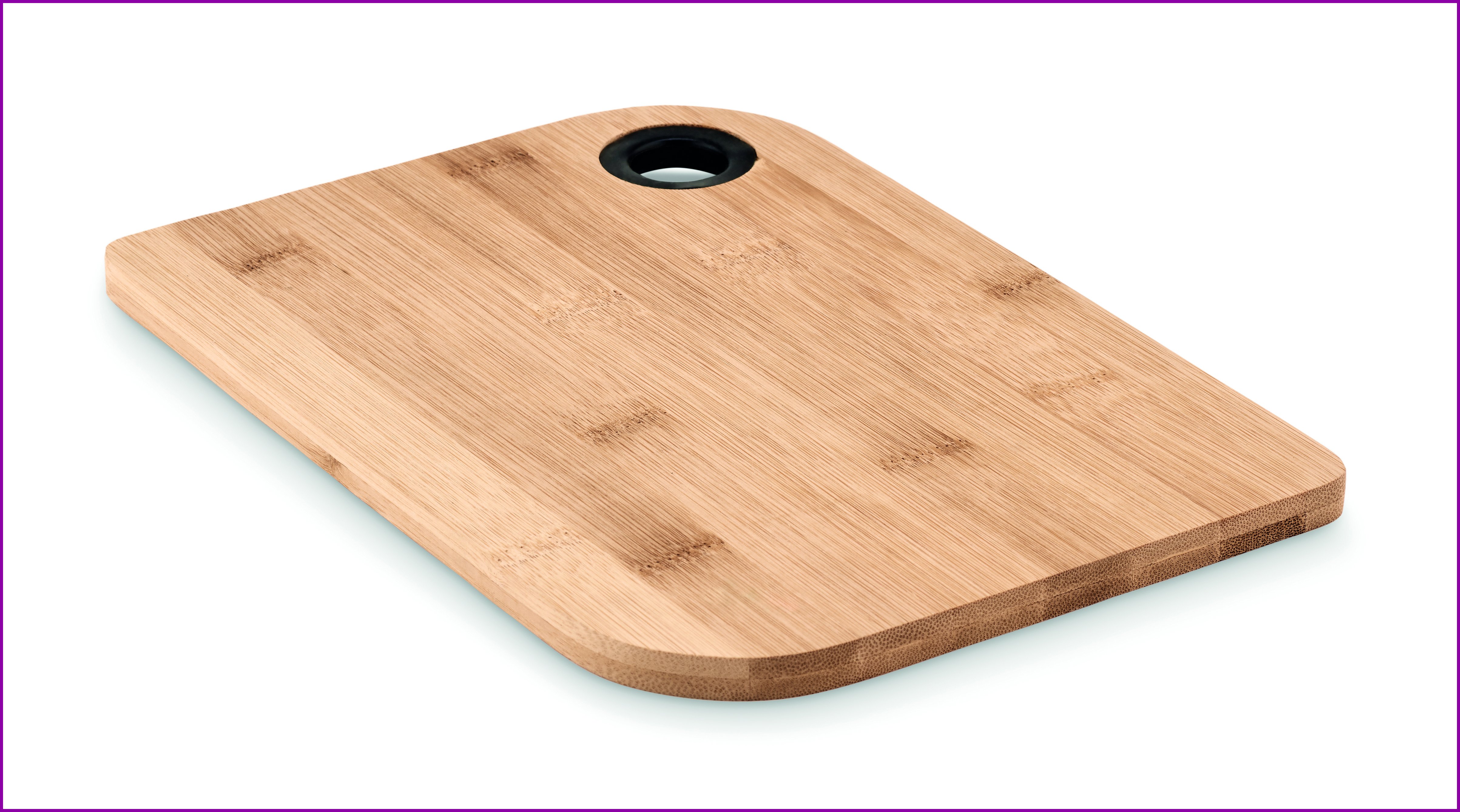 Leikkuulauta bambusta, reikä tuotteen ripustamista varten. Luonnollisen materiaalin (bambu) vuoksi, tuotteiden värissä/ koossa saattaa olla erinäisyyksiä ja tämä voi vaikuttaa painatuksen lopputulokseen. FSC 100% | N5.7 | FSC-C213206