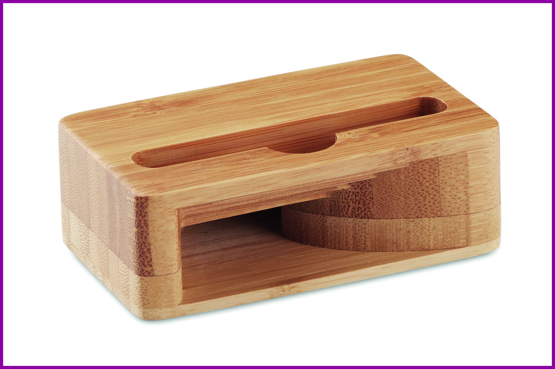 Bambu puhelinjalusta ja äänenvahvistin. Luonnollisen materiaalin (bambu) vuoksi, tuotteiden värissä/ koossa saattaa olla erinäisyyksiä ja tämä voi vaikuttaa painatuksen lopputulokseen. FSC®-certified | FSC 100%, N5.7, FSC-C213206