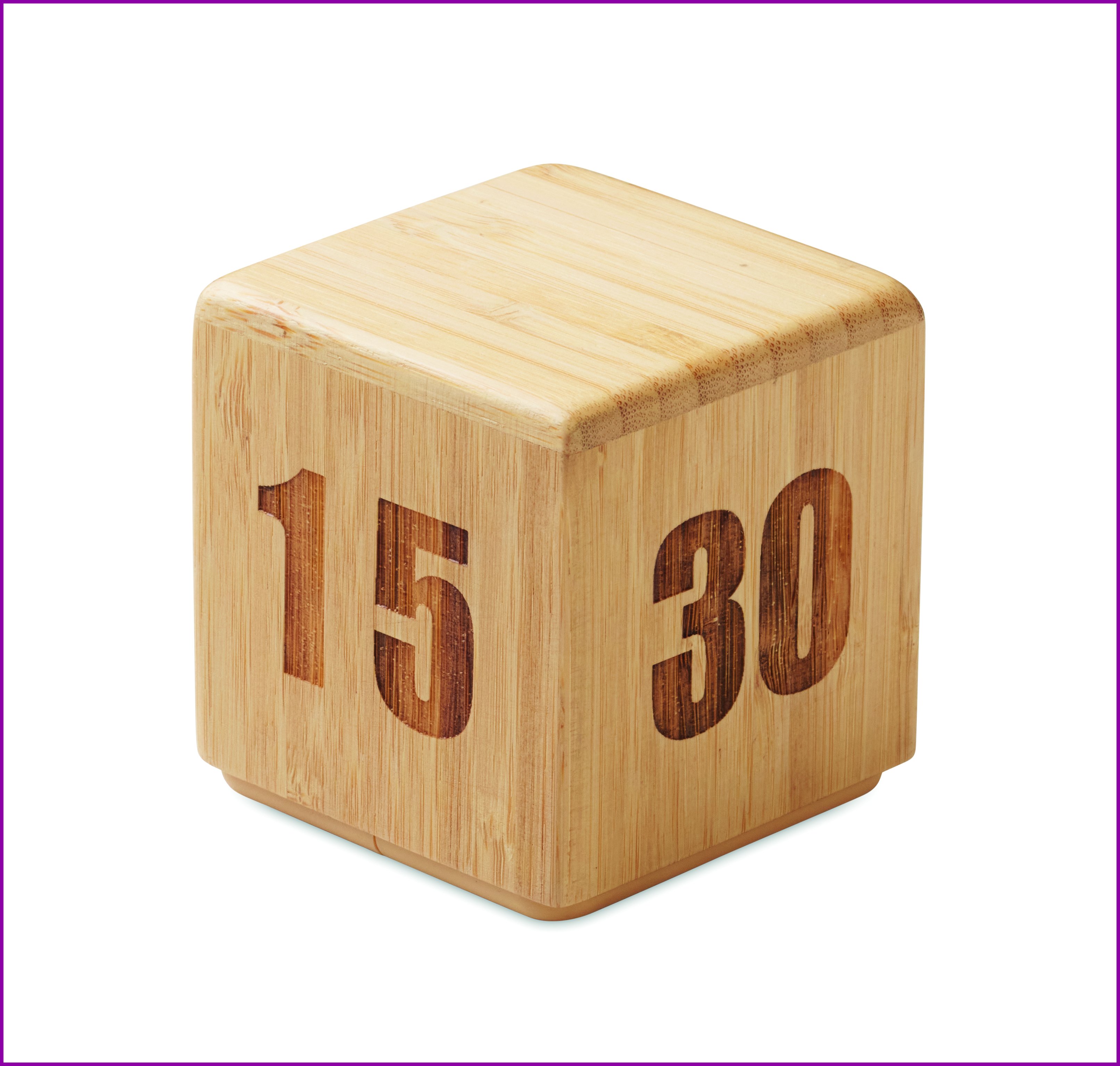 Bambukierre torkkuajastin, jossa on lähtölaskenta. Paristokäyttöinen. Mukana 2 x AAA-paristoa