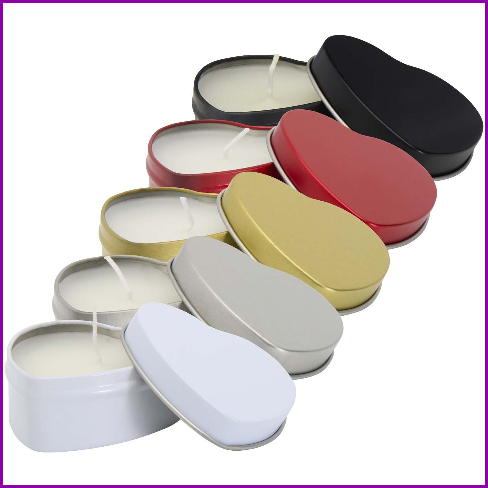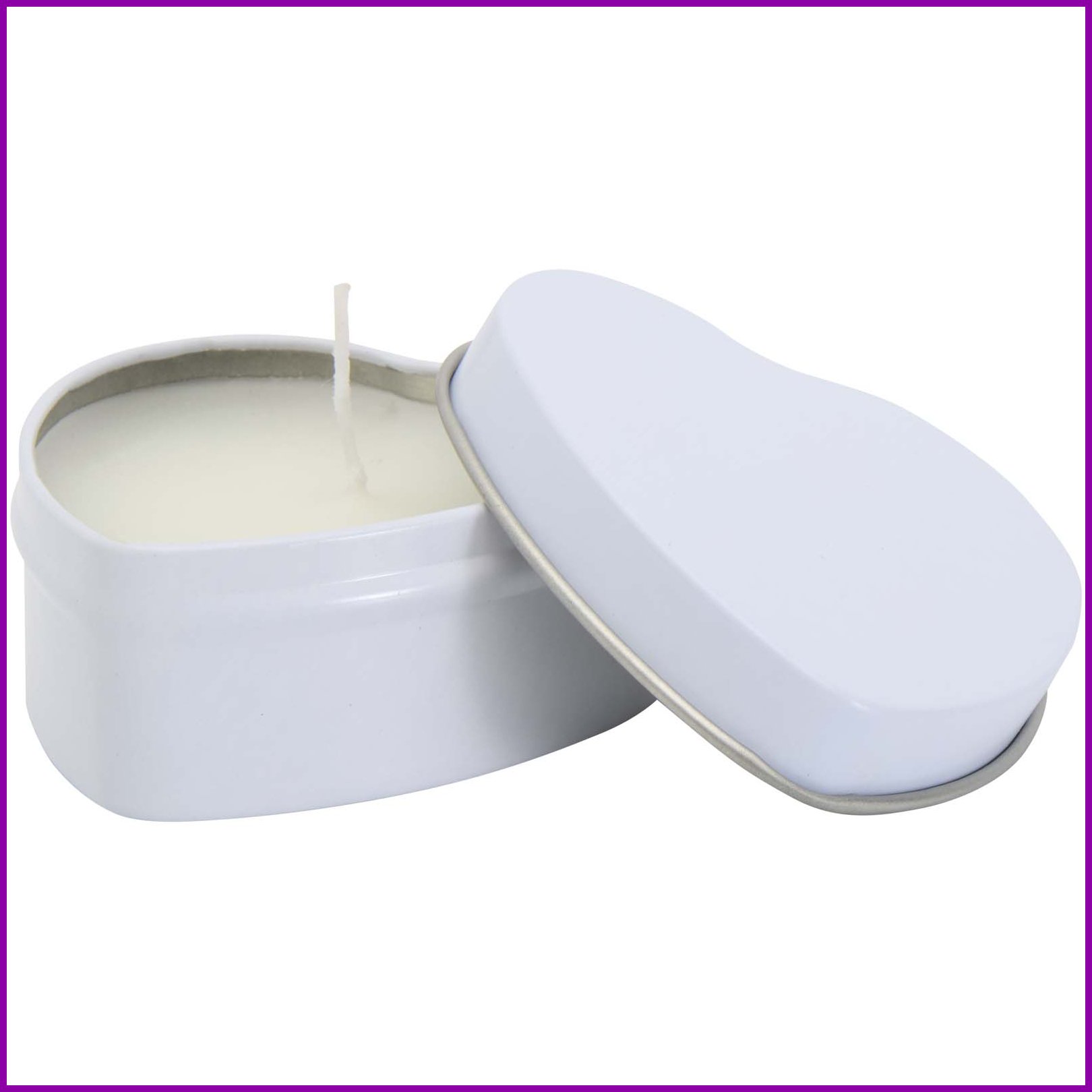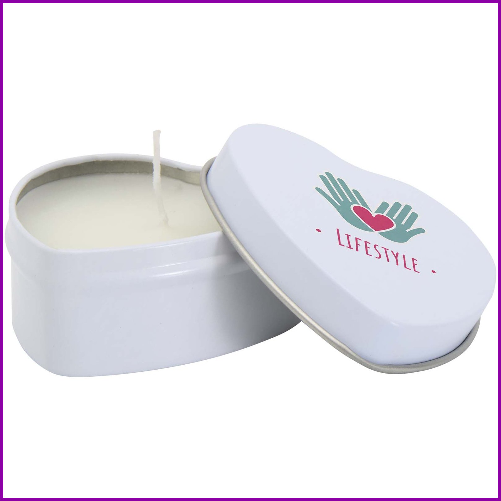 Pyydä tarjous painatuksesta tuotteseen Blissful vaniljan tuoksuinen kynttilä sydämen muotoisessa metallirasiassa Valkoinen