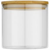 Pieni lasinen ruoka-astia, jossa on bambukansi. Ruoka-astiassa yhdistyvät turvallisen ja kestävän lasin edut sekä bambun uusiutuvat ominaisuudet. Lasisäiliö (ilman kantta) on mikroaaltouunin ja astianpesukoneen kestävä. Pakattu kierrätettyyn voimapaperilaatikkoon. Tilavuus: 320 ml.