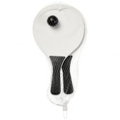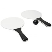 Rantapelisetti hauskanpitoon. Useita värivaihtoehtoja. Kestävä rantapelisetti on valmistettu MDF-puusta, kahva on värillistä PP-muovia. Mukana samanvärinen pehmeä pallo verkkopussissa, joka helpottaa kuljetusta rannalle hauskanpitoa varten. Varoitus! Ei sovellu alle kolmivuotiaille lapsille. Pienet pallot. Tukehtumisvaara.Värit ja Koot