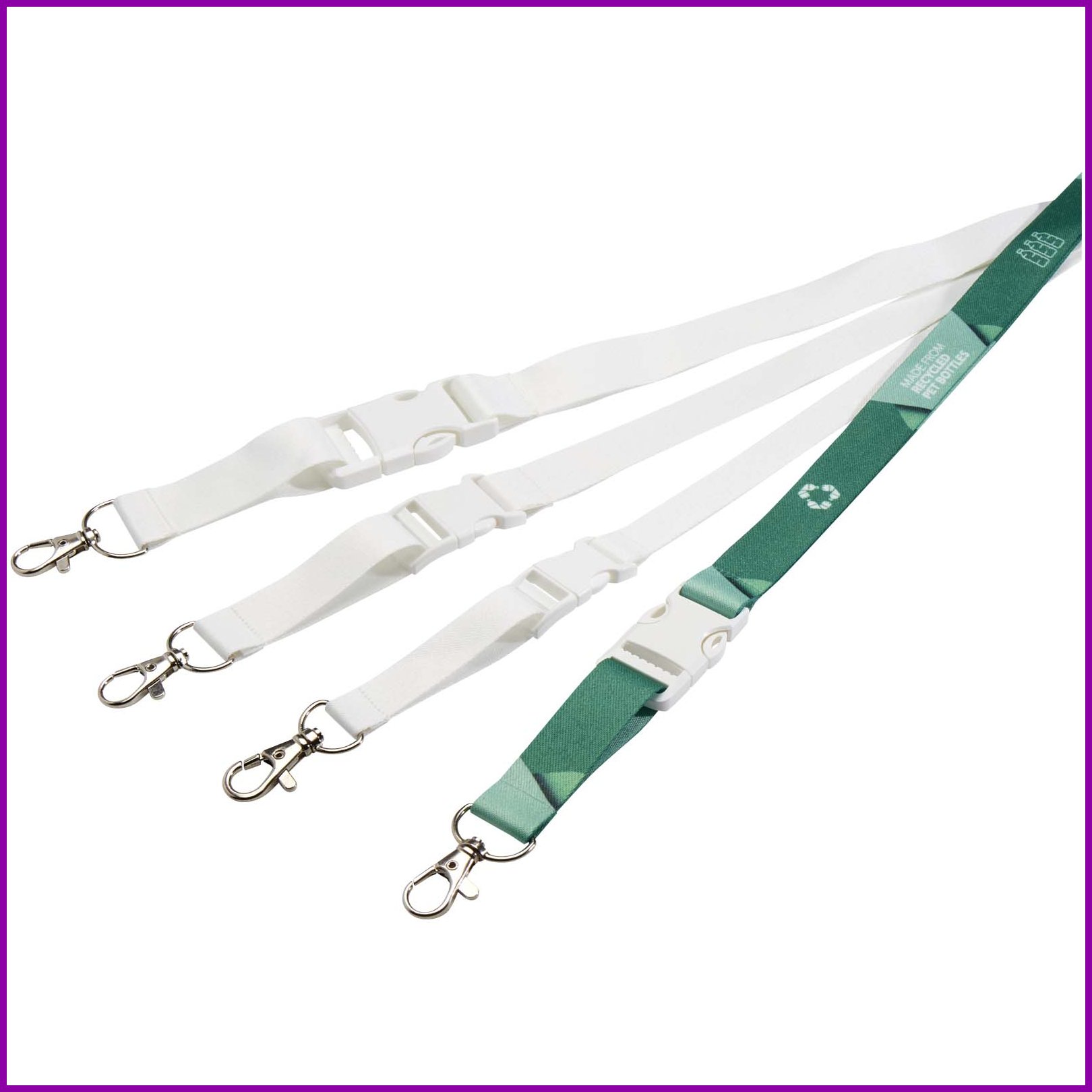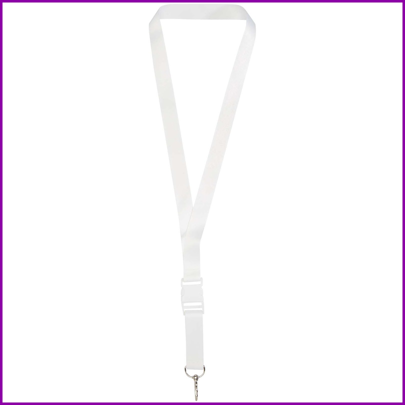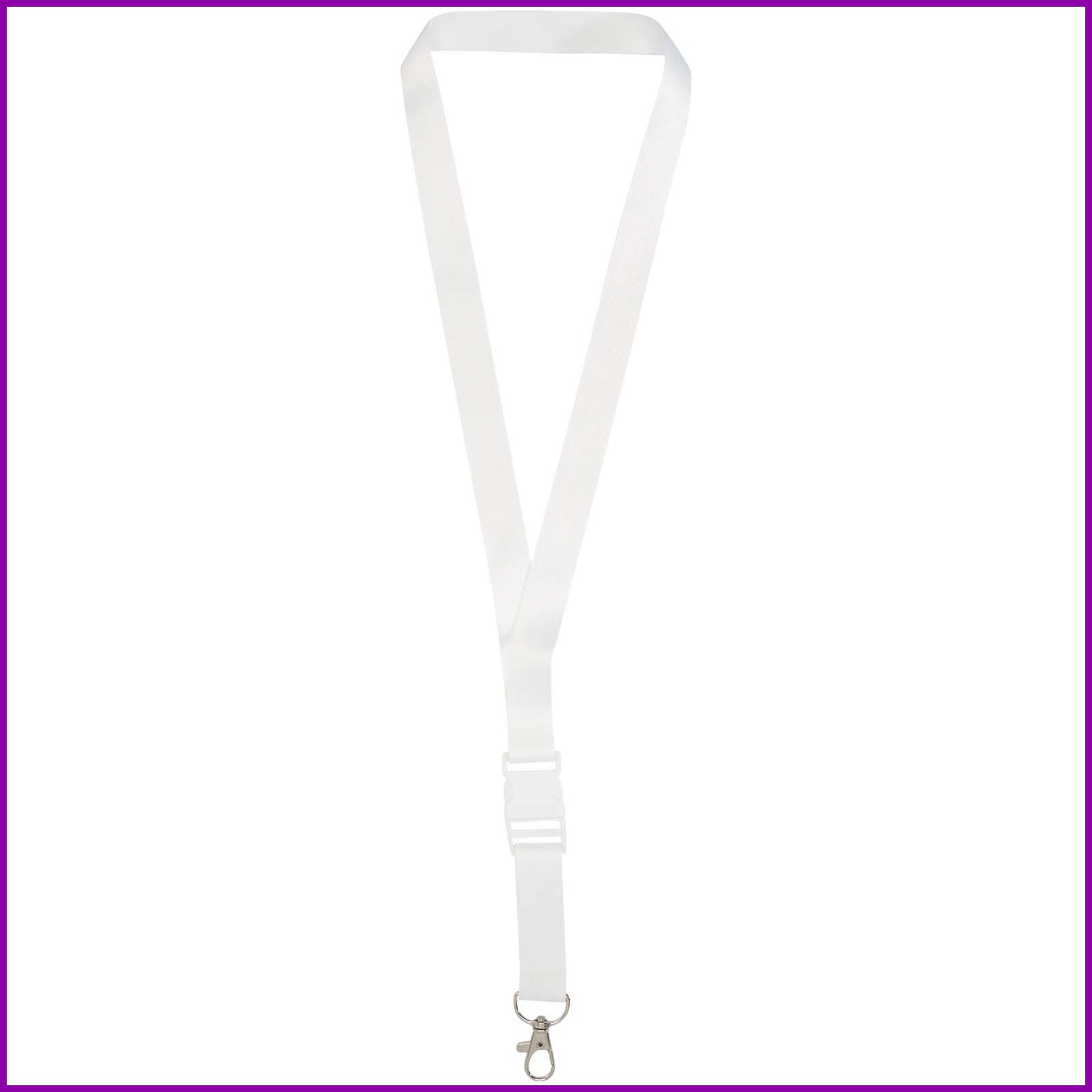 Pyydä tarjous painatuksesta tuotteseen Bucks-kaulanauha RPET-materiaalia muovisoljella Valkoinen Valkoinen
