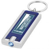 Avainvalo, jossa on kirkas, valkoinen LED-valo ja virtapainike. Metalliavainrengas. Mukana paristot.Värit ja Koot
