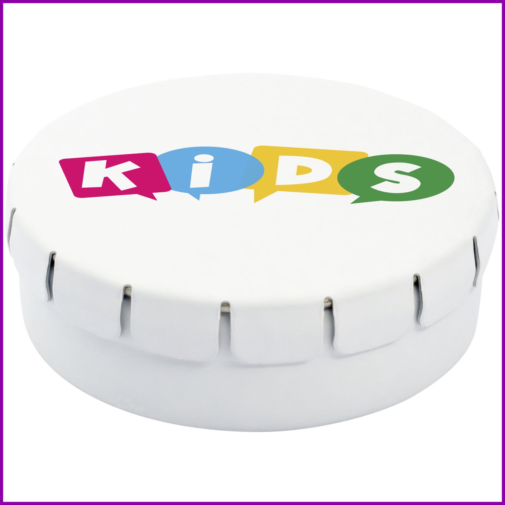 Hedelmäpastillit peltirasiassa, joka aukeaa helposti painalluksella. Saatavilla on monenlaisia värejä ja erilaisia sisältövaihtoehtoja: natural minttupastillit, vahvat minttupastillit, sokerittomat minttupastillit, hedelmäpastillit, sydämenmuotoiset mansikkapastillit, kanelipastillit, sitruunaminttupastillit tai suklaat. Kansi voidaan koristella värillisellä digitaalisella painatuksella.