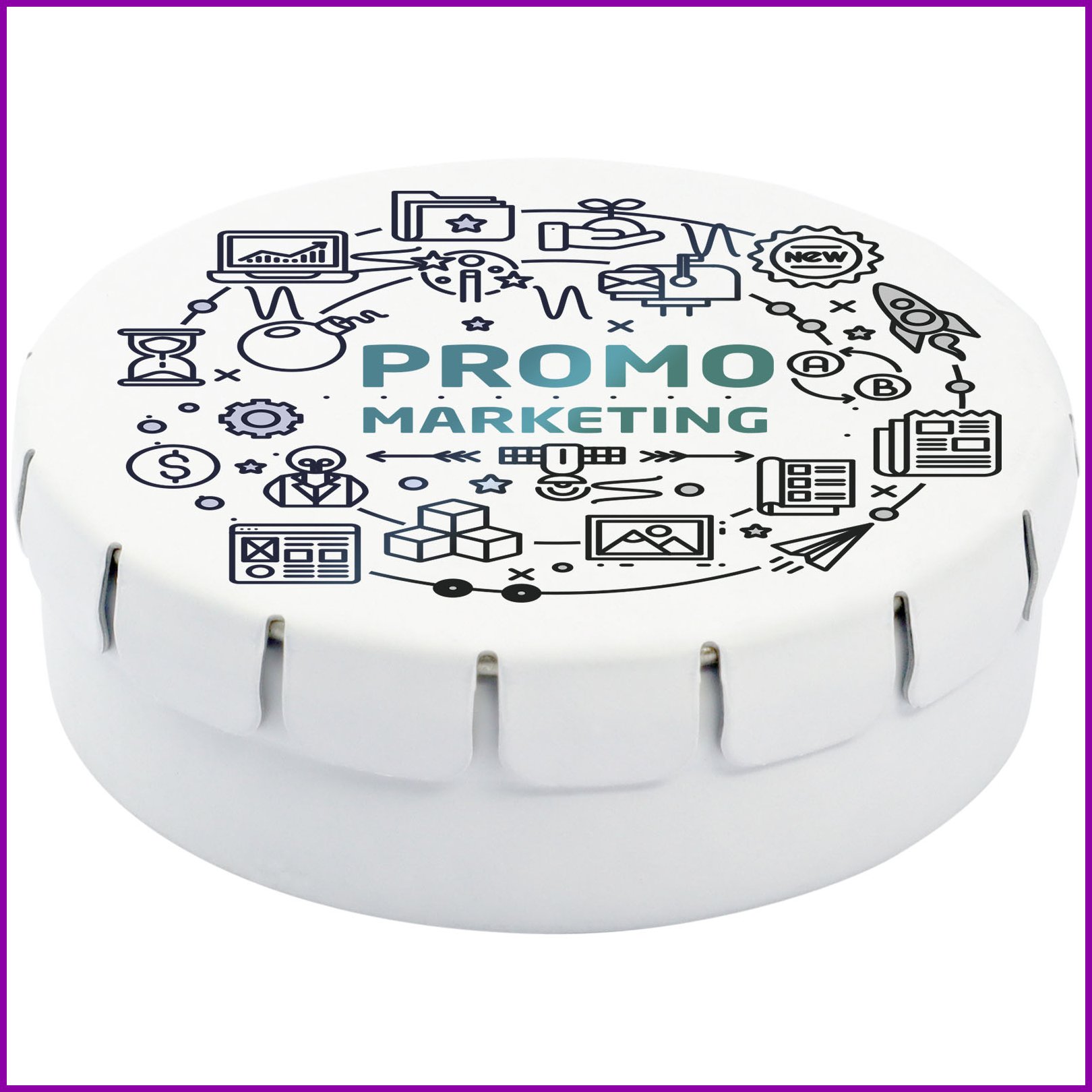 Sitruunan ja mintun makuiset pastillit peltirasiassa, joka aukeaa helposti painalluksella. Saatavilla on monenlaisia värejä ja erilaisia sisältövaihtoehtoja: natural minttupastillit, vahvat minttupastillit, sokerittomat minttupastillit, hedelmäpastillit, sydämenmuotoiset mansikkapastillit, kanelipastillit, sitruunaminttupastillit tai suklaat. Kansi voidaan koristella värillisellä digitaalisella painatuksella.