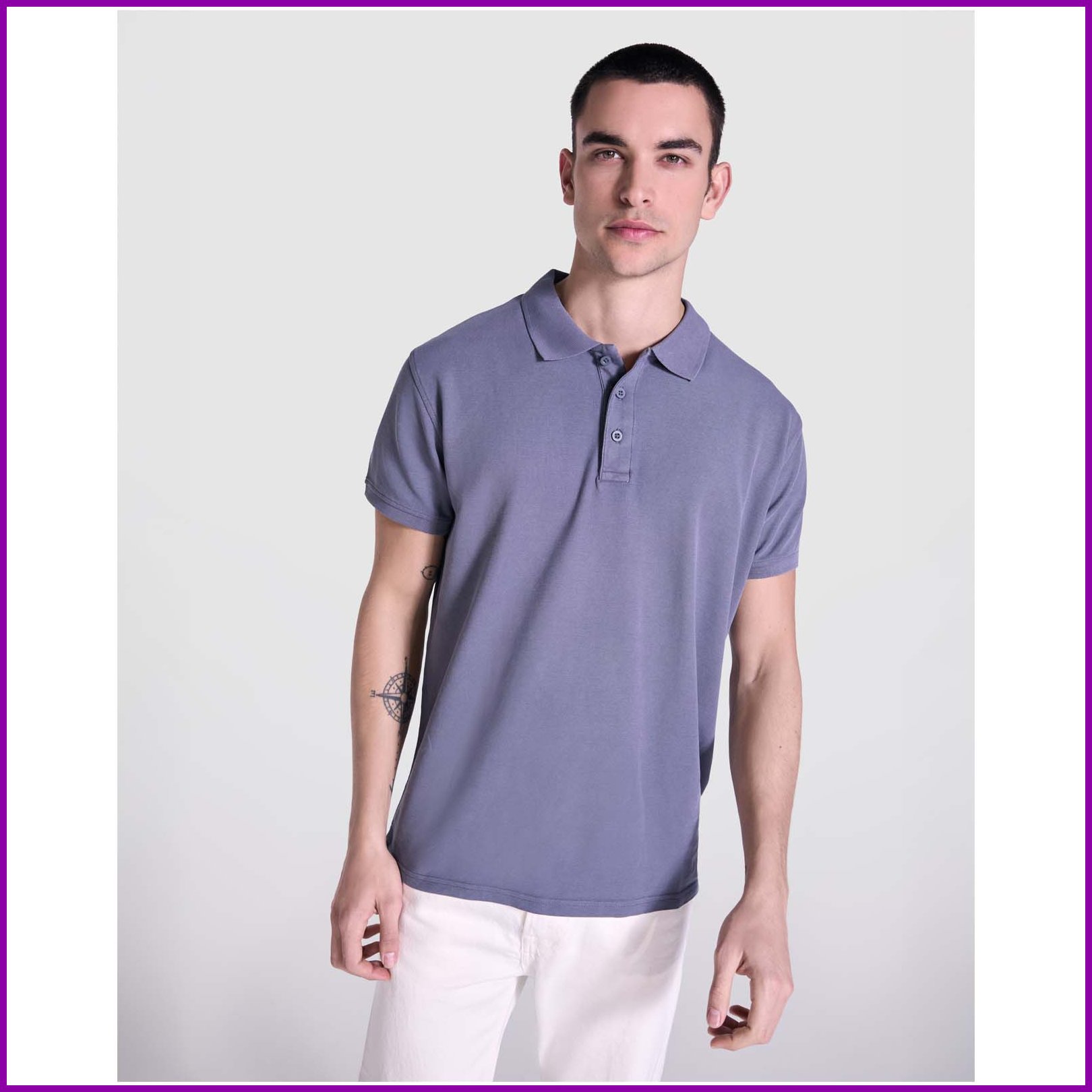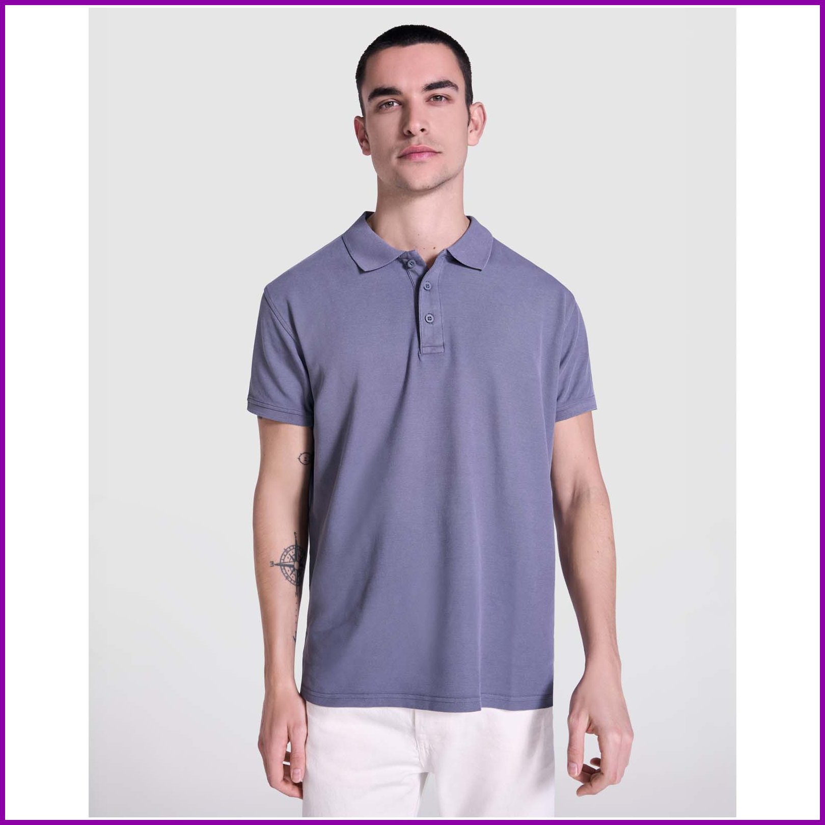 Lyhythihainen unisex-poolopaita. Happopesuviimeistely. Uurrettu 1 x 1 -kaulus ja hihansuut, sivuhalkiot. Sävy sävyyn -peitetikkaus. Napituslista, jossa kolme nappia.
