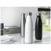 Tyhjiöeristetty RCS-sertifioitu kierrätetystä ruostumattomasta teräksestä valmistettu pullo ikonisella muotoilulla. Tämä tyylikäs vesipullo, jonka pohja sopii useimpiin mukinpidikkeisiin, on täydellinen mainostuote. Testattu ja hyväksytty Saksan elintarviketurvallisuslainsäädännön (LFGB) mukaisesti, ja ftalaattipitoisuus on testattu REACH-asetusten mukaisesti. Tilavuus on 500 ml. Toimitetaan kierrätetystä kartongista valmistetussa lahjapakkauksessa. Pitää juomat kuumina jopa 12 tuntia ja kylminä 24 tuntia.Värit ja Koot