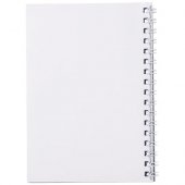 Desk-Mate®-spiraalimuistikirja, A6. Sisältää 50 kpl tyhjiä paperiarkkeja, 80 g/m2, kiiltävä kartonkikansi (250 g/m2) ja 450 micronin läpinäkyvä polypropeenikansi edessä. Musta tai valkoinen kierre. Voit räätälöidä muistikirjan täysin. Valitse esimerkiksi viivoitetut, ruudulliset tai blankot sivut - kaikki on mahdollista!Värit ja Koot