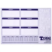 Valkoinen A2 Desk-Mate®-muistio. Sisältää 50 kpl tyhjiä paperiarkkeja, 80 g/m2. Täysivärinen painatus mahdollista kaikille arkeille. Saatavilla kaksi kokoa: 25 arkkia, 50 arkkia.Värit ja Koot
