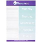 Valkoinen A4 Desk-Mate®-muistio. Sisältää 50 kpl tyhjiä paperiarkkeja, 80 g/m2. Myös 25 ja 100 arkkia saatavilla. Täysiväripainatus mahdollista kaikille arkeille. Saatavilla kolme kokoa: 25 arkkia, 50 arkkia ja 100 arkkia.Värit ja Koot
