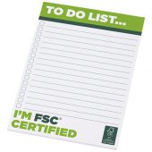 Valkoinen A5 Desk-Mate®-muistio. Sisältää 50 kpl tyhjiä paperiarkkeja, 80 g/m2. Täysiväripainatus mahdollista kaikille arkeille. Saatavilla kolme kokoa: 25 arkkia, 50 arkkia ja 100 arkkia.Värit ja Koot