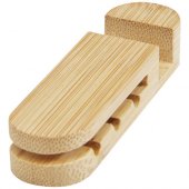 Bambusta valmistettu kaapelinhallinta pitää kaapelit siistinä ja järjestyksessä. Toimii myös puhelinjalustana, joten se on täydellinen pöytävaruste. Koko: 90 x 24 x 18 mm. Toimitetaan lahjapaketissa, joka on valmistettu kierrätetystä materiaalista.