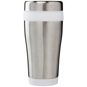 Pyydä tarjous painatuksesta tuotteseen Elwood 410 ml:n eristetty juomamuki RCS-sertifioidusta kierrätetystä ruostumattomasta teräksestä Valkoinen