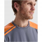 Lyhythihainen t-paita väriyhdistelmäkuviolla. Pyöreä kaula-aukko, jossa kontrastiväriset vahvistetut koristesaumat. Sivusaumat. Kontrastiväriset olkapäät ja yksityiskohdat.Värit ja Koot