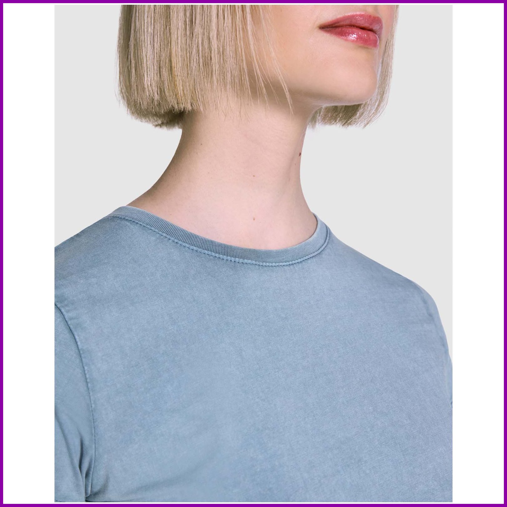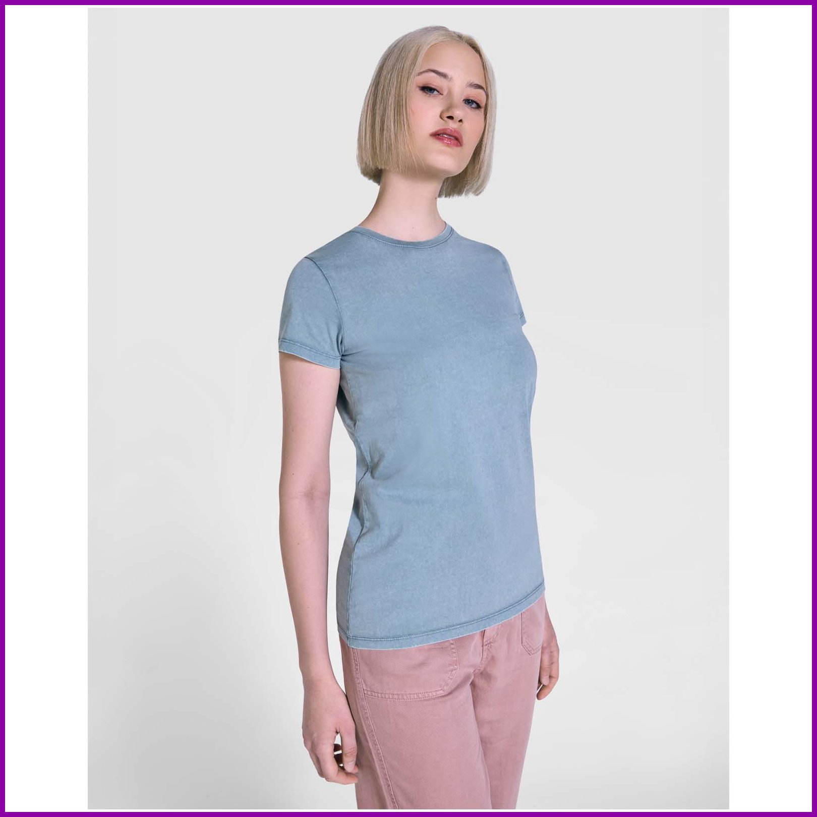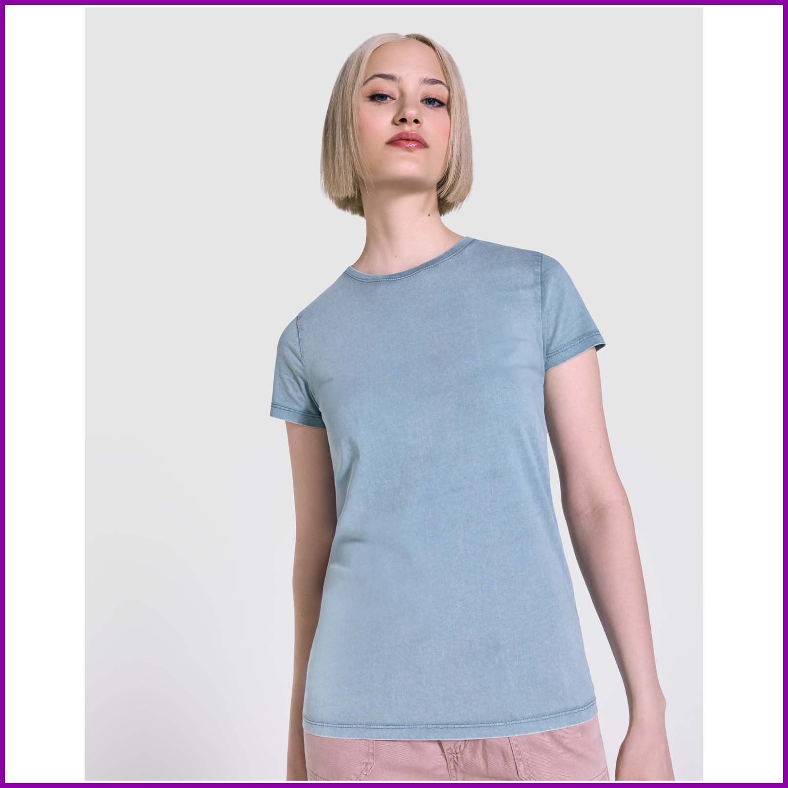 Lyhythihainen t-paita naisille. Happopesuviimeistely. 1 x 1 -uurrettu pyöreä pääntie sivusaumoilla. Sävy sävyyn -peittotikkaus pääntiessä.Värit ja Koot