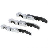 Ruostumattomasta teräksestä valmistettu tarjoilijan veitsi, joka on varustettu korkkiruuvilla, folioleikkurilla ja pullonavaajalla. Kaksiosaisen rakenteen ansiosta korkki on helppo vetää pullosta.Värit ja Koot