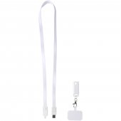 Pyydä tarjous painatuksesta tuotteseen Franz kierrätetystä muovista valmistettu älypuhelinkaulanauha, jossa on sisäänrakennettu datasynkronointi- ja 65 W:n 5-in-1-pikalatauskaapeli Valkoinen