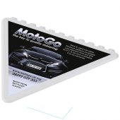Kolmionmuotoinen jääkaavin tuulilasin puhdistukseen, suuri logomerkintäalue. Kolmion kaikkia sivuja voidaan käyttää jään poistamiseen. Valmistettu Isossa-Britanniassa kierrätetystä muovista. Materiaalissa voi olla struktuuria kierrätetyn materiaalin ominaisuuden vuoksi.Värit ja Koot