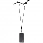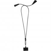 Pyydä tarjous painatuksesta tuotteseen Funi kierrätetystä muovista valmistettu älypuhelinkaulanauha, jossa on sisäänrakennettu datasynkronointi- ja 100 W:n 5-in-1-pikalatauskaapeli Musta