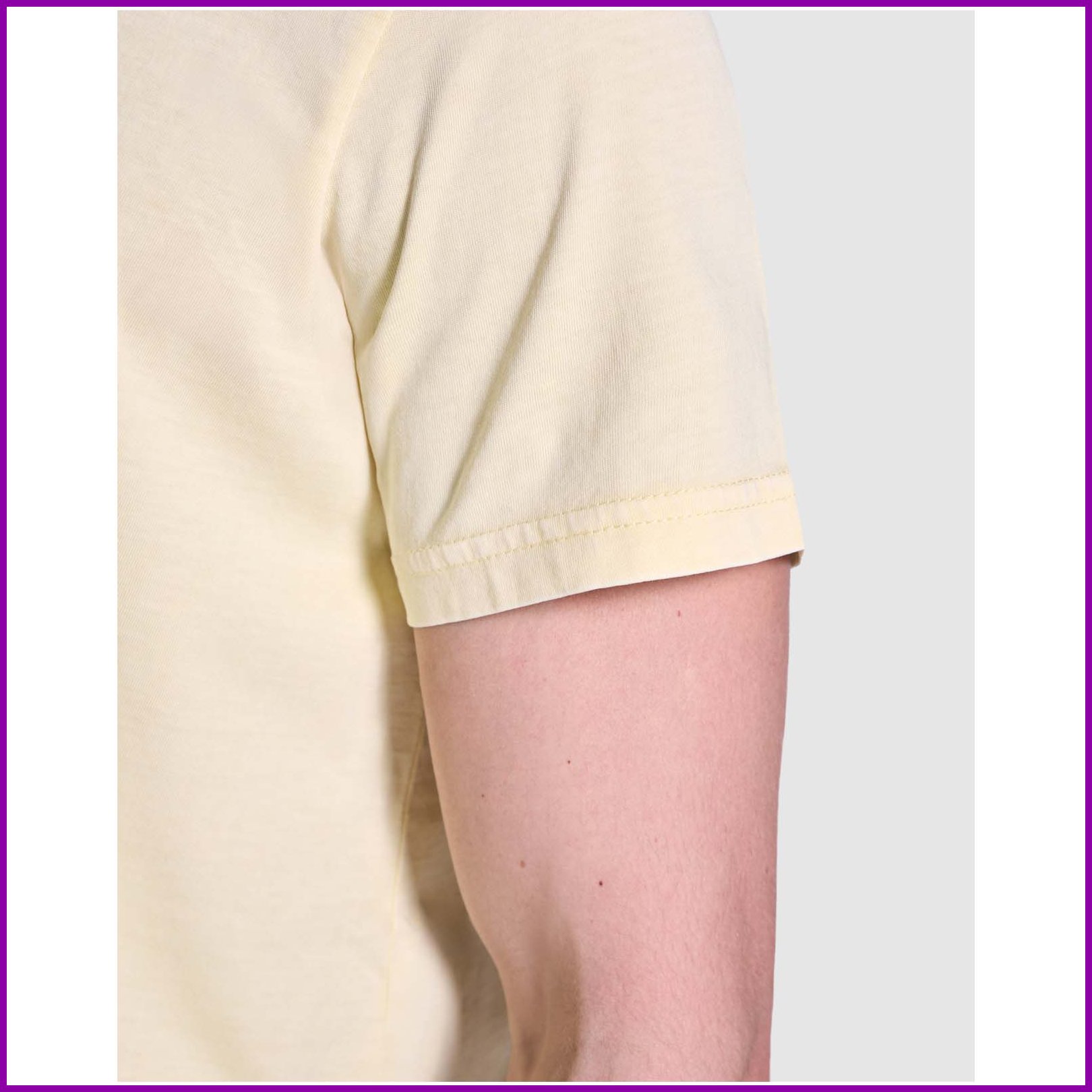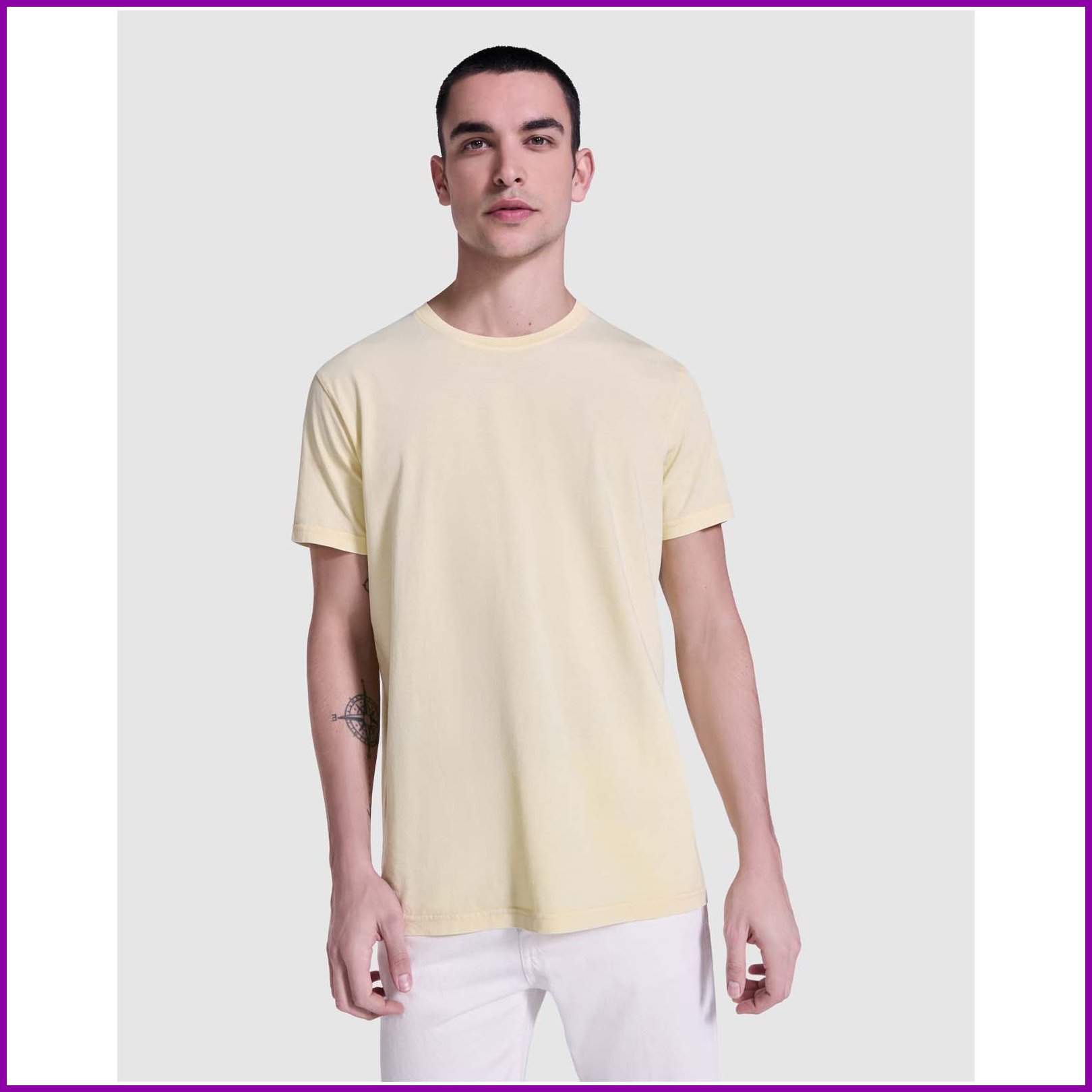 Miesten lyhythihainen t-paita. Happopesuviimeistely. 1 x 1 -uurrettu pyöreä pääntie. Sävy sävyyn -peittotikkaus hienostuneella viimeistelyllä.Värit ja Koot
