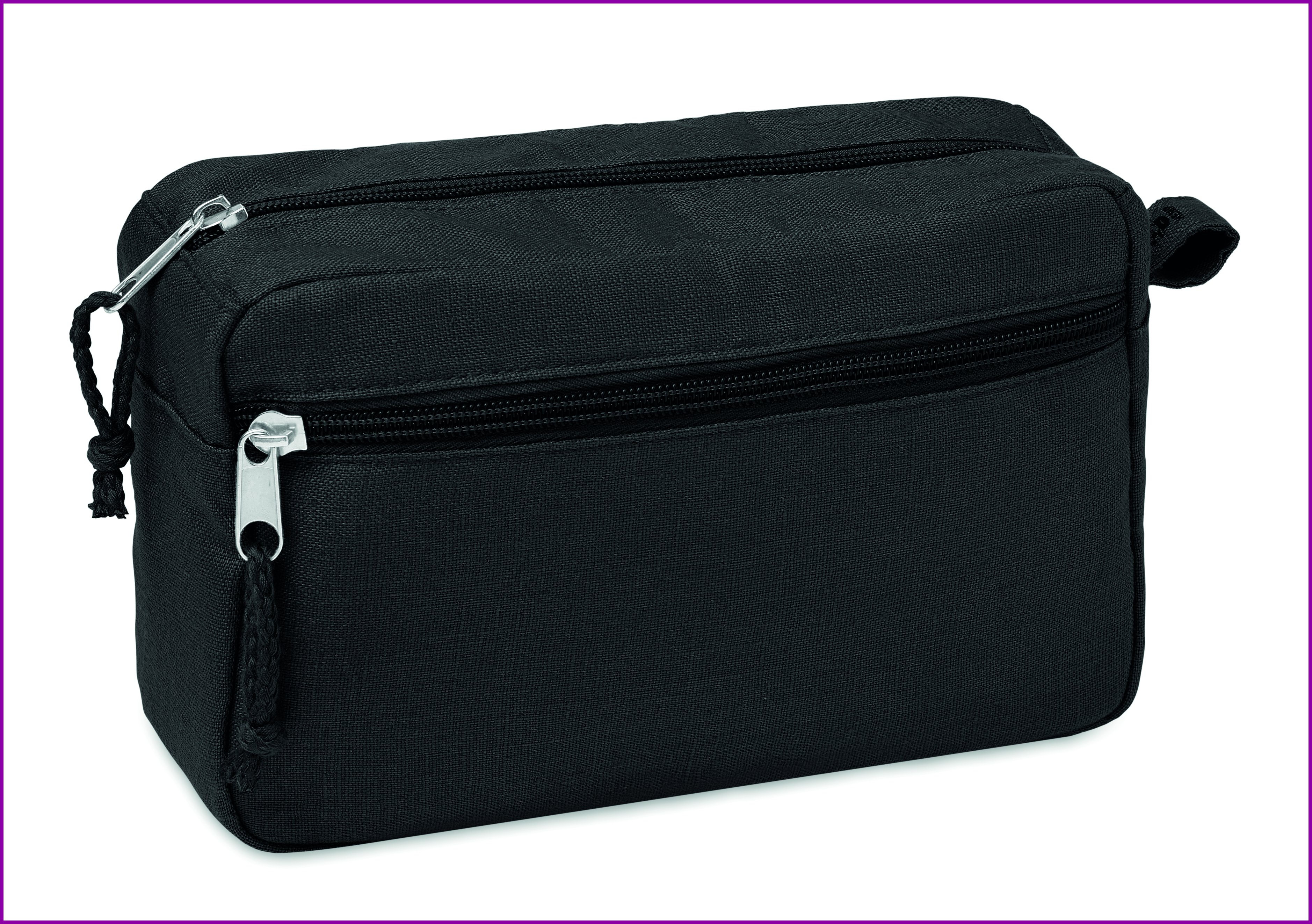 200gr/m² 100% hamppukankaasta valmistettu, tupla vetoketjullinen kosmetiikkalaukku.