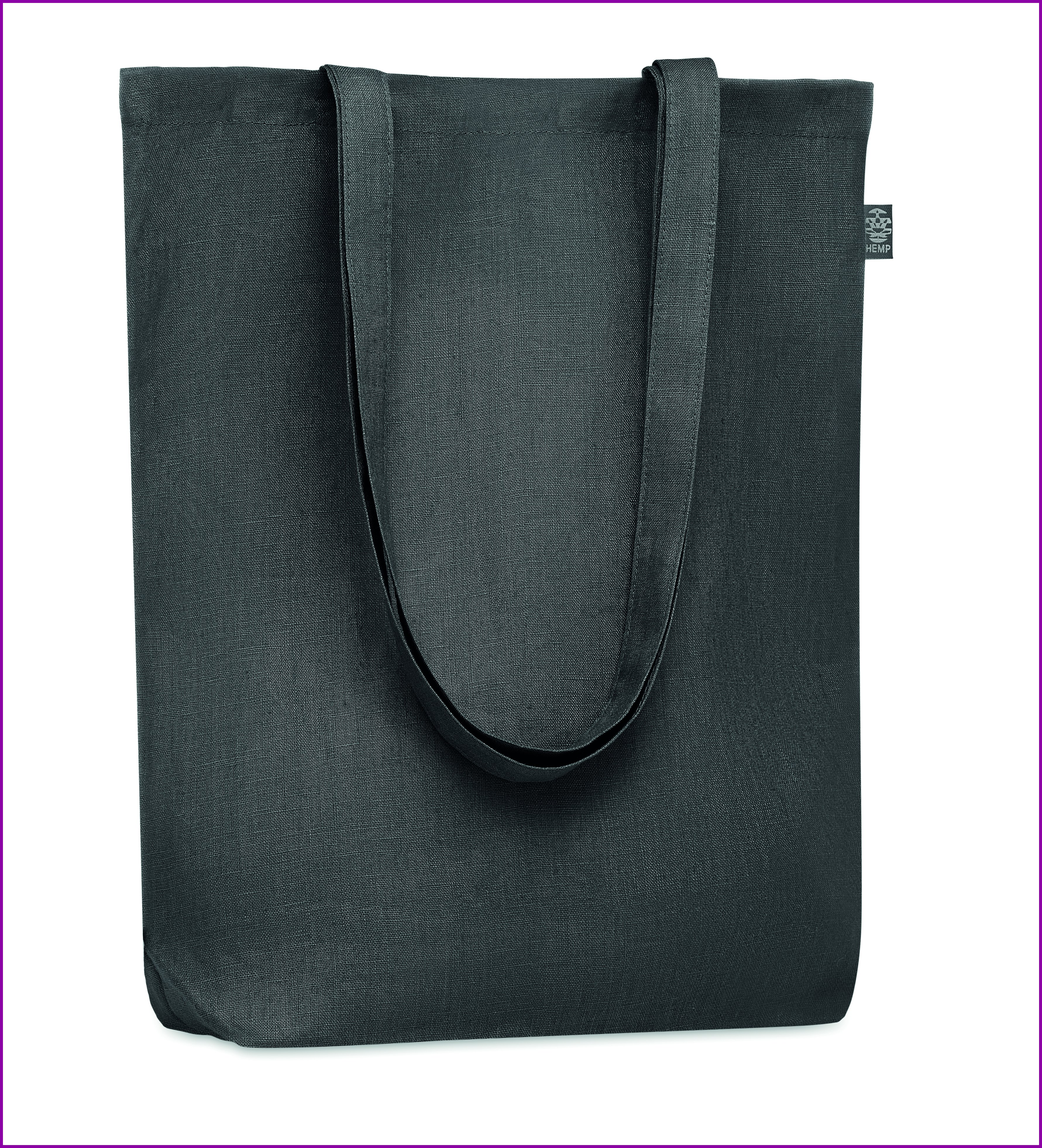 200gr/m² 100% hamppukankaasta valmistettu laukku, pitkillä kahvoilla ja pohja levikkeellä.