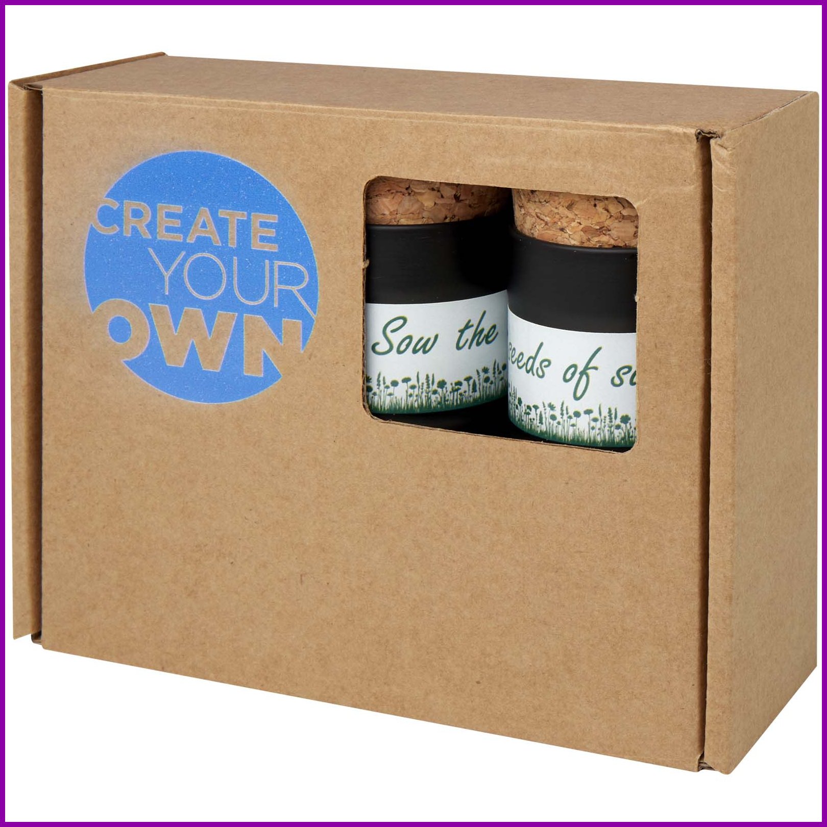 Tämä pöytäpuutarhasetti sisältää kolme kierrätetystä harjatusta alumiinista valmistettua kasvatusruukkua. Sen mukana tulee innovatiivisia siemenpalloja, joiden sisältämät mehiläisystävälliset kukkasekoitukset (keltamaite, sormustinkukka, puna-apila, kyläneidonkieli ja mäkimeirami) itävät noin 1–2 viikossa. Pakkaus sisältää korkkitulpan, kasvatusohjeet sekä orgaanisia multakiekkoja. Kun kasvit ovat kasvaneet, ruukuissa voi kasvattaa uusia kasveja, säilyttää tavaroita tai ne voi kierrättää. Toimitetaan lahjapakkauksessa, johon voidaan myös lisätä painatuksen. Valmistettu Euroopassa.