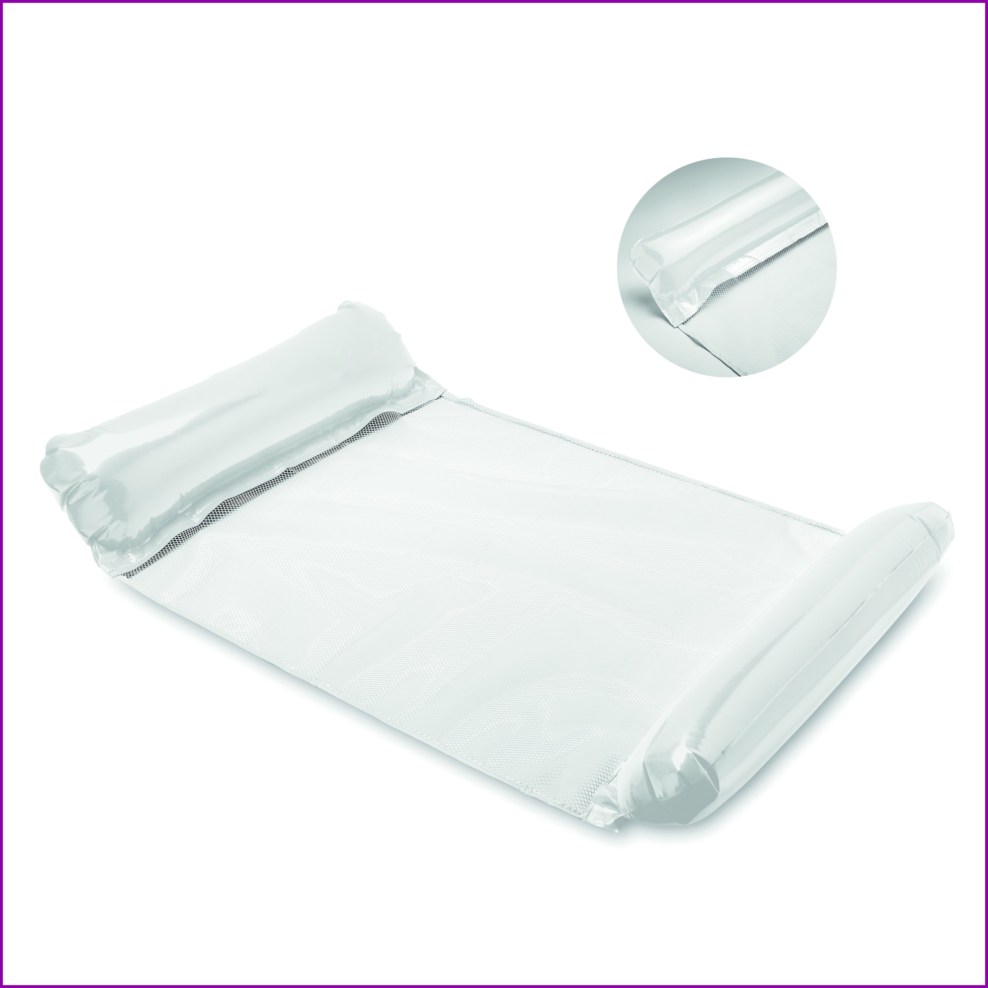 PVC:stä valmistettu puhallettavat uimatyynyt, joiden välissä on verkko. Kelluva riippumatto, max painoraja 80 kg.