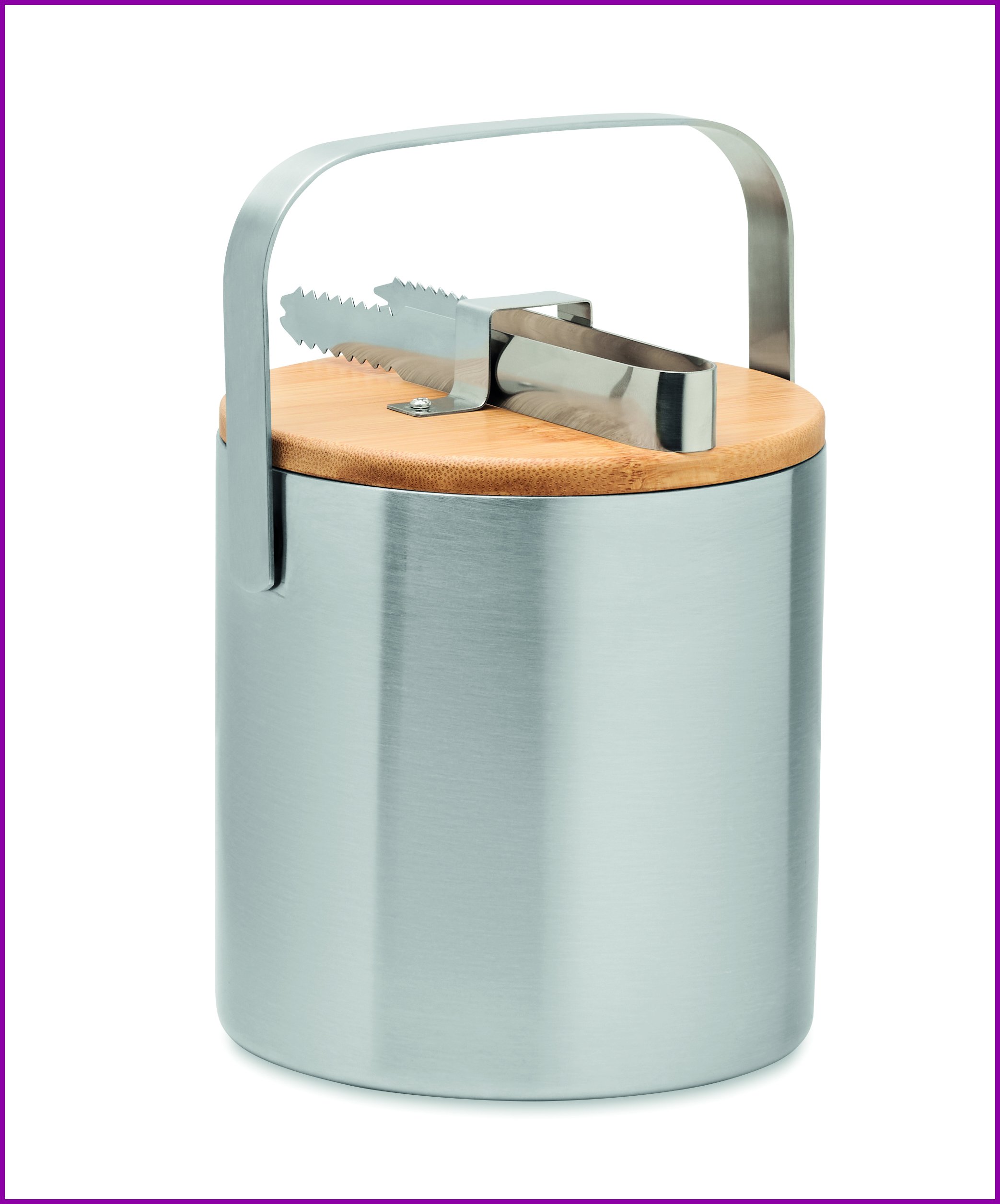 Kaksiseinäinen eristetty,ruostumattomasta teräksestä valmistettu jääpalakulho, jossa on bambukansi ja jääpihdit. Tilavuus 1200 ml.