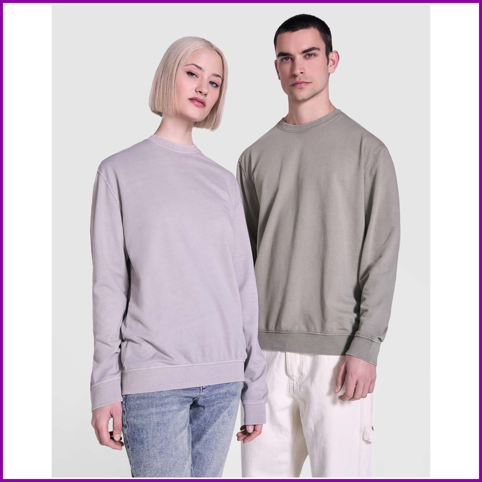 Unisex-svetari happopesuviimeistelyllä. 2 x 1-uurrettu kaulus, hihansuut ja helma sävy sävyyn. Vahvistetut saumat hihansuissa, helmassa, vyötärönauhassa ja kainaloissa. Sävy sävyyn -peittotikkaus pääntiessä.Värit ja Koot