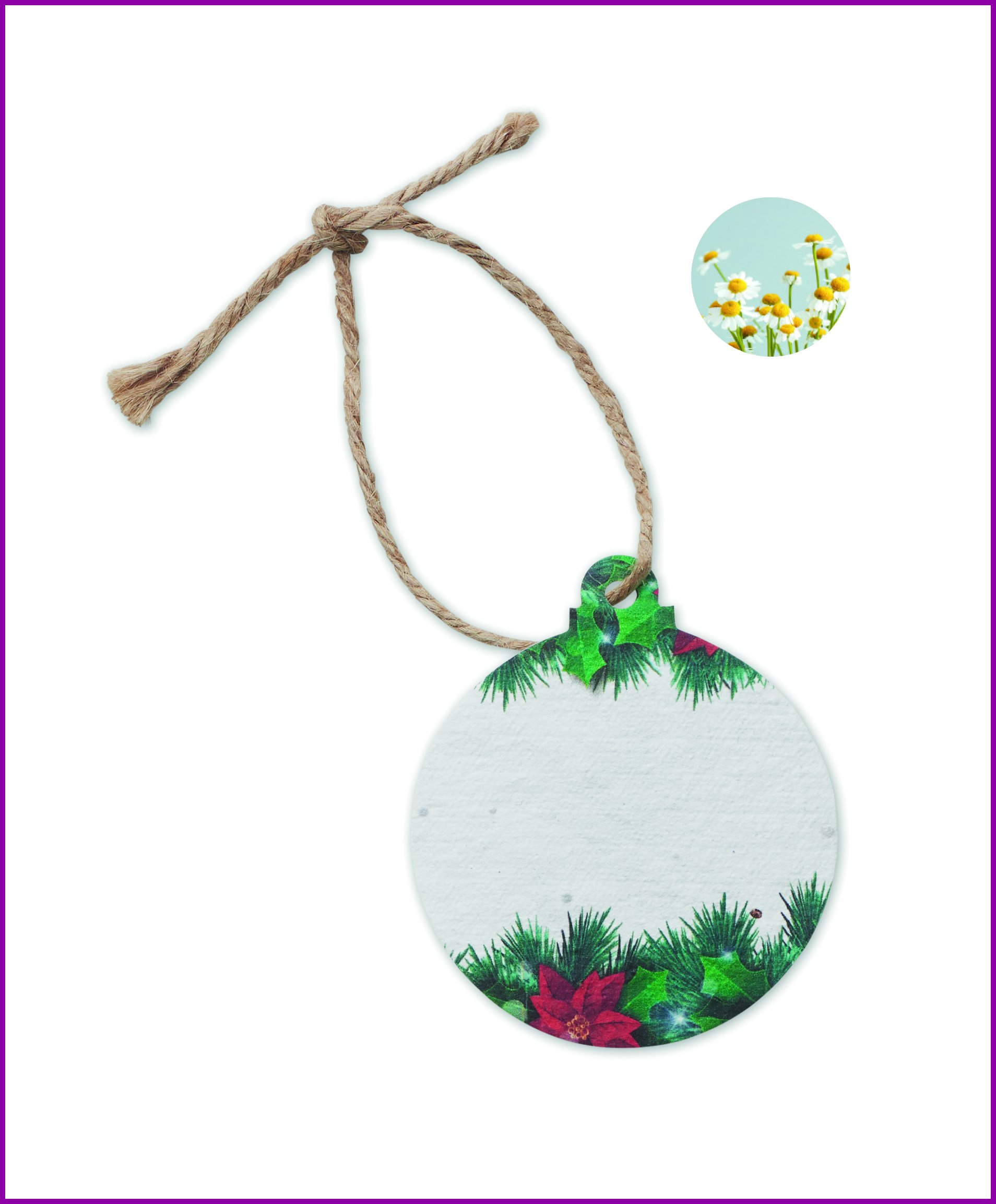 Pehmeä villikukkasekoitus siemenpaperi joulukoristeena juuttikäydellä. Istuta paperi käytön jälkeen ja kasvata oma villikukkaniittysi. Valmistusmaa EU. Koristele joulukuusi tai kotisi tällä paperikoristeella. Juhlapyhien jälkeen voit käyttää koristeen kasvattamaan puutarhassasi luonnonkukka sekoituksen. Kestävä ja uudelleenkäytetty!