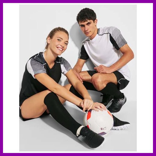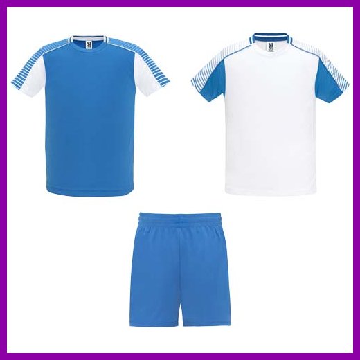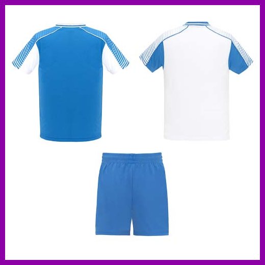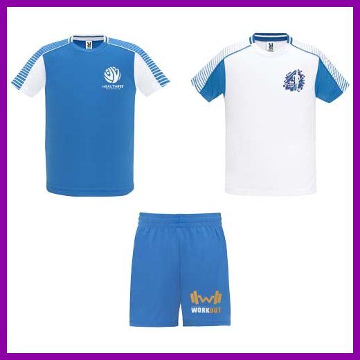 Settiin kuuluu kaksi t-paitaa ja yhdet shortsit. Toisen t-paidan väri on päinvastainen kuin ensimmäisen. Tekninen ja hengittävä kangas. T-paidat, joissa on painetut puoliraglan-hihat. Pyöreä pääntie, jossa trikoota selässä. Joustava vyötärönauha shortseissa, joissa on yhteensopiva kiristysnyöri sisäpuolella turvaompeleilla. Shortsit, joissa kontrastiraita ja halkiot helmassa. Irrotettava etiketti.Värit ja Koot