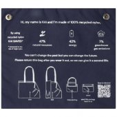 Kai GRS-kiertotalouskassi – suurin ympäristöteko. Ympäristöystävällisempi elämäntapa alkaa paremmasta designista, joka rasittaa ympäristöä vähemmän. Jo yhden kassin keskimääräinen ympäristövaikutuksen vähennys on seuraava: 7 % pienempi hiilijalanjälki, 42 % pienempi energiankulutus ja 47 % pienemmät ympäristökustannukset. 200T GRS -sertifioidusta kierrätetystä nailonista valmistettu Kai on klassinen ja ajaton kassi, joka sopii päivittäiseen käyttöön. Painatuspaikka on taskussa, joka toimii myös pienenä pussina. Laukun voi palauttaa takaisinotto-ohjelman kautta, josta saat lisätietoa QR-koodista.Värit ja Koot