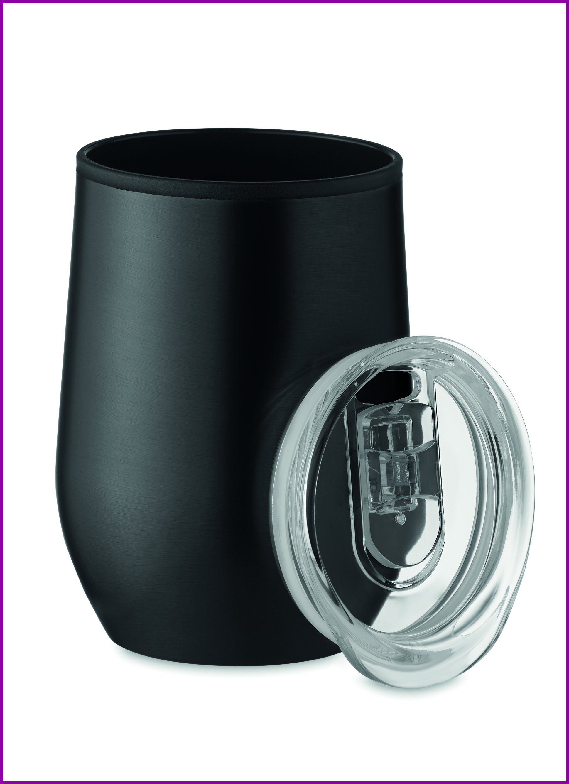 Kaksiseinäinen ruostumattomasta teräksestä valmistettu muki, jonka sisäosa on PP-muovia. Mukissa on läpinäkyvä PS-kansi. Tilavuus 350 ml.